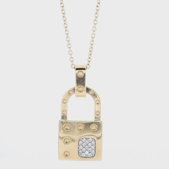 Estate 18k Yellow Gold Roberto Coin "Pois Moi" Lock Pendant With Pave Diamonds Necklace