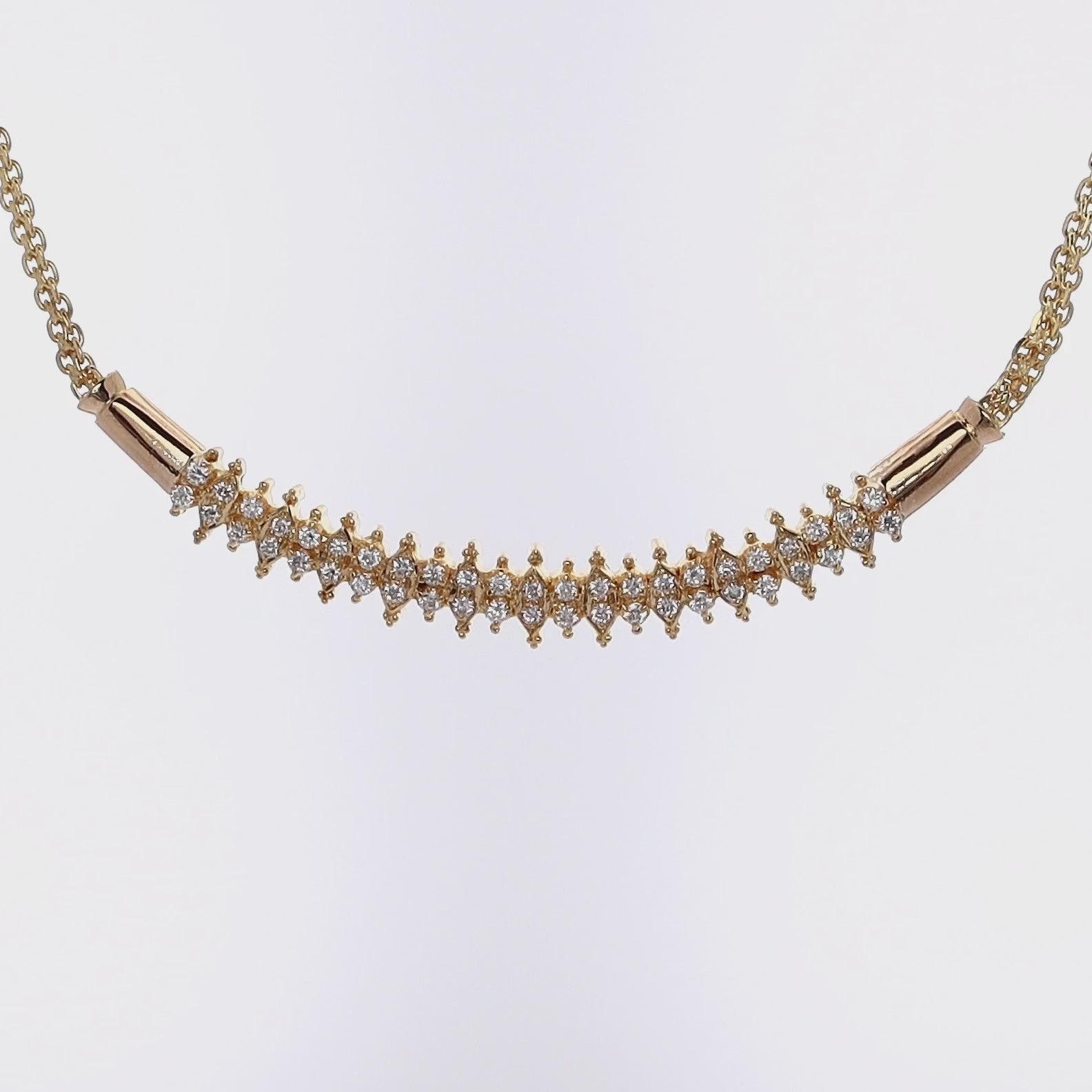 Estate 21 Karat Yellow Gold Double Row Smile Design Diamond Pendant Necklace