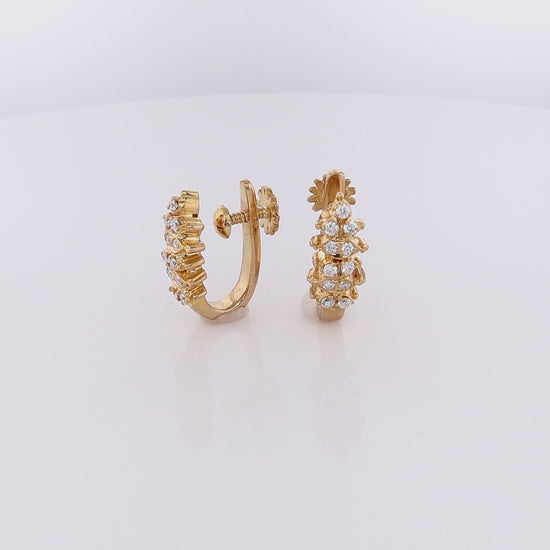 Estate 21 Karat Yellow Gold Hoop Design Diamond Screw Backs Earrings