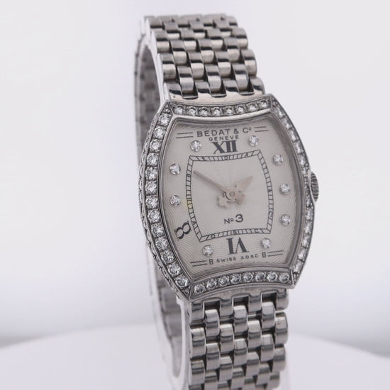 Estate Bedat & Co. No. 3 Stainless Steel Ladies Silver Diamond Roman Dial Diamond Bezel Polished Bracelet Quartz 304