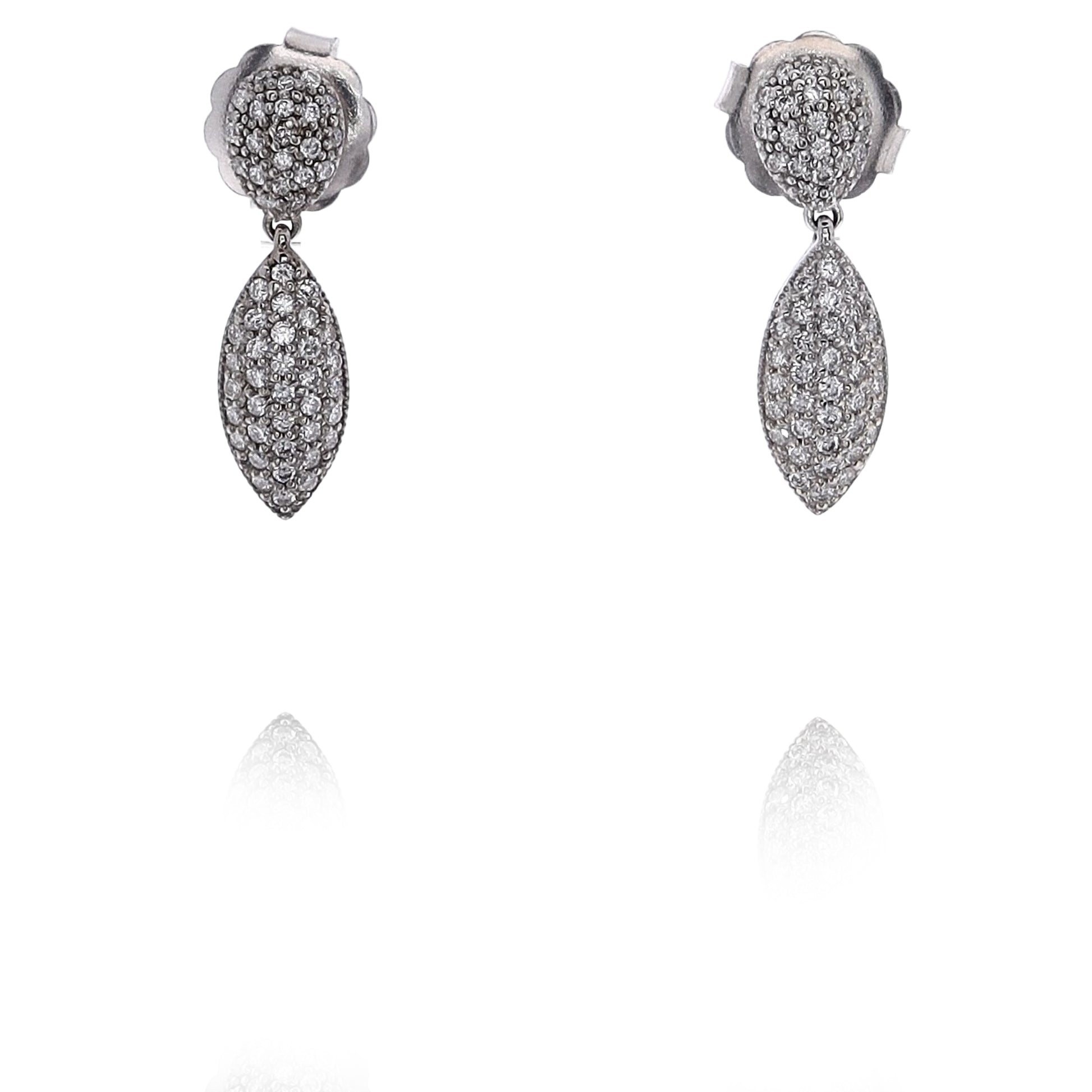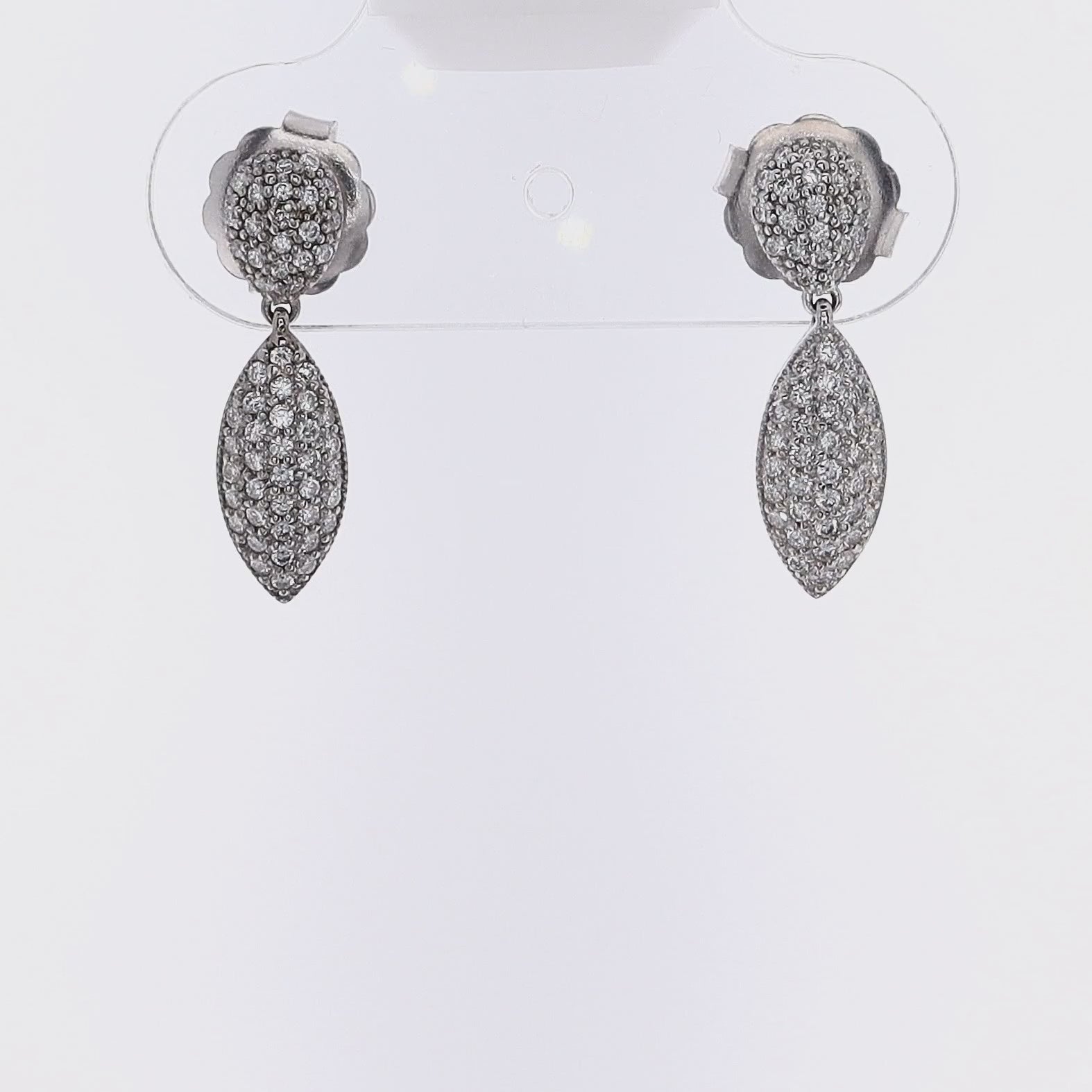 Estate Charles Krypell 18 Karat White Gold Oval and Marquise Design Diamond Dangle Earrings