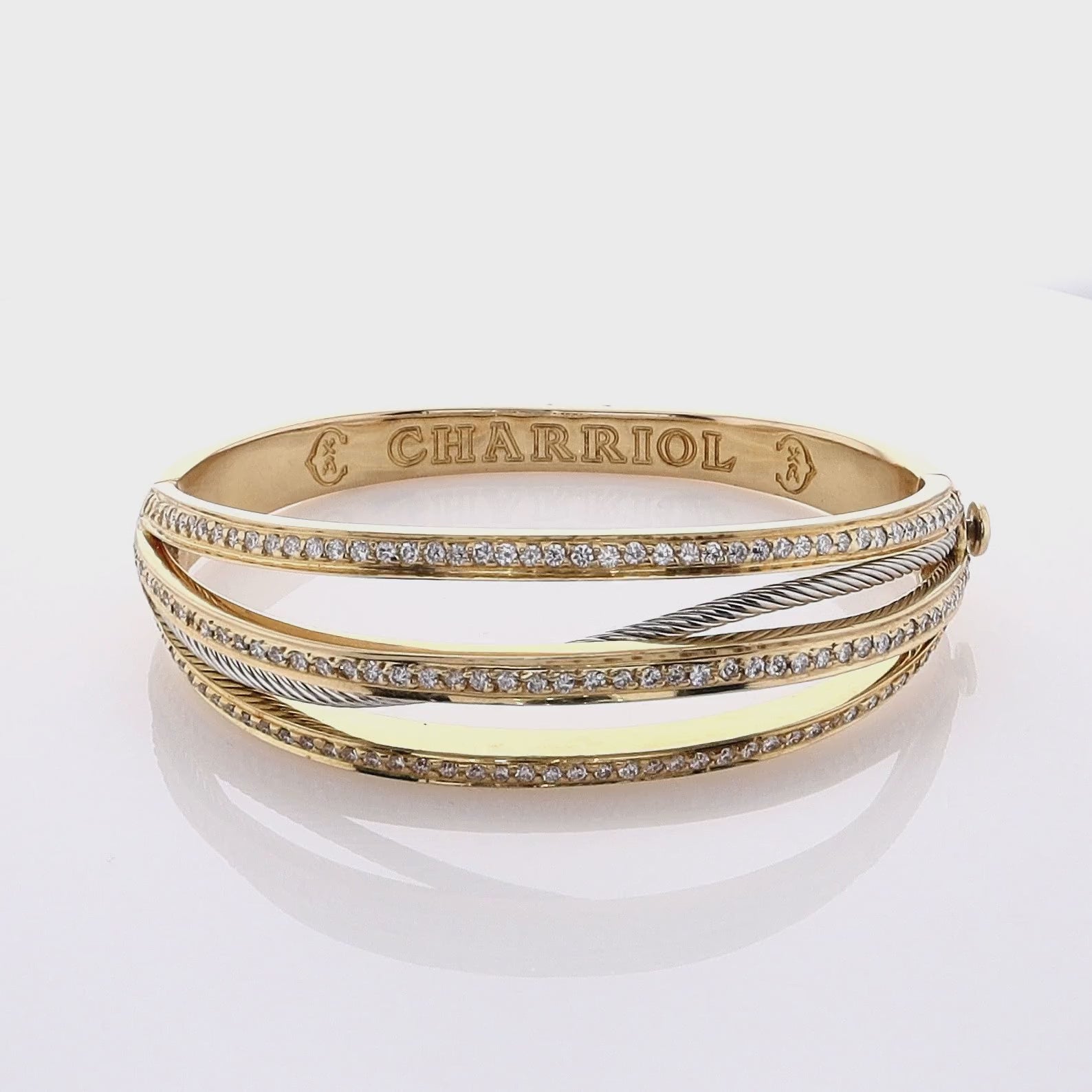 Estate Charriol 18k Yellow Gold Multi Row Diamond Hinged Bangle Bracelet