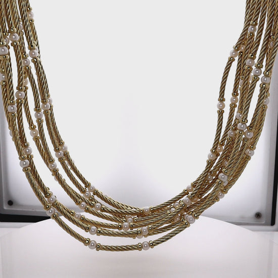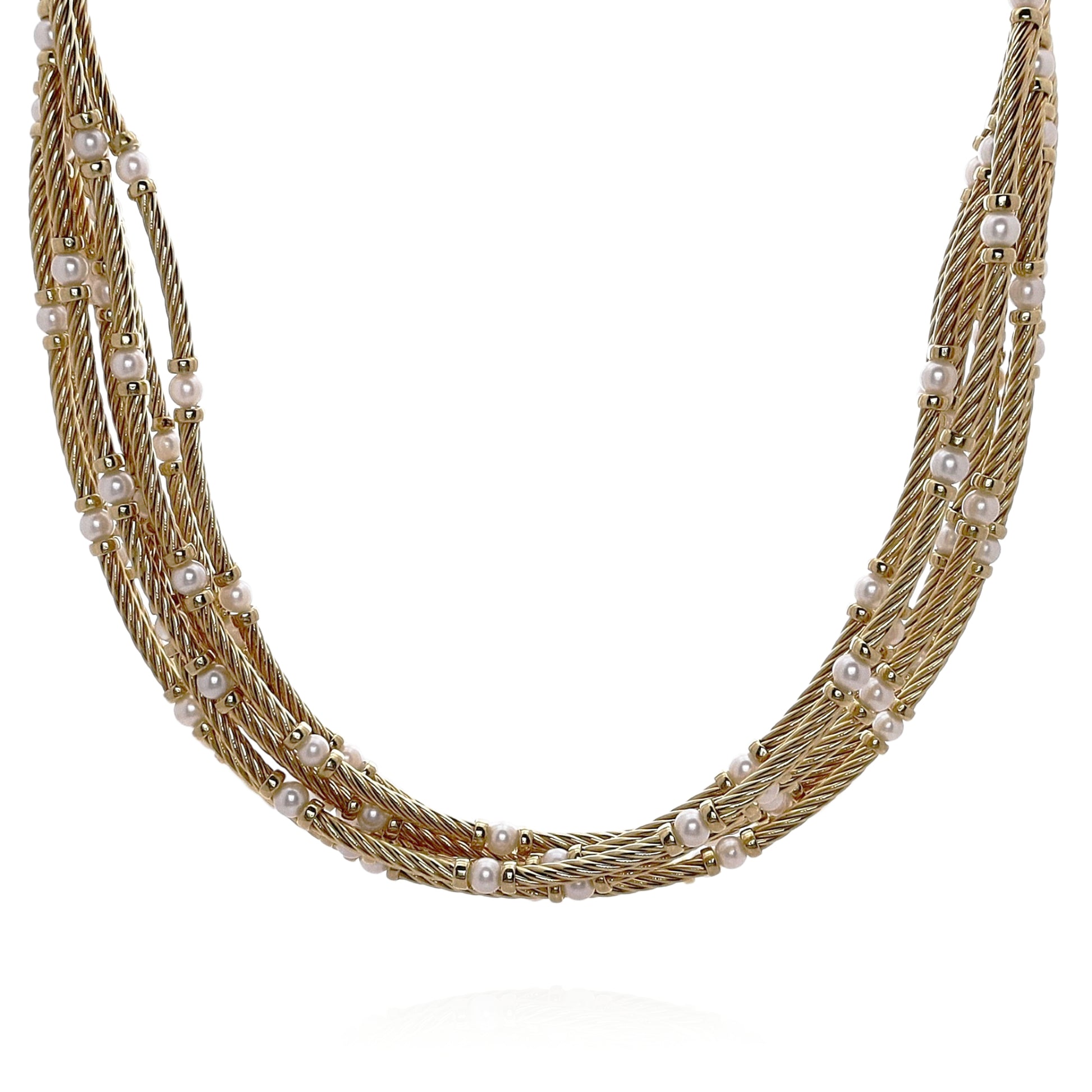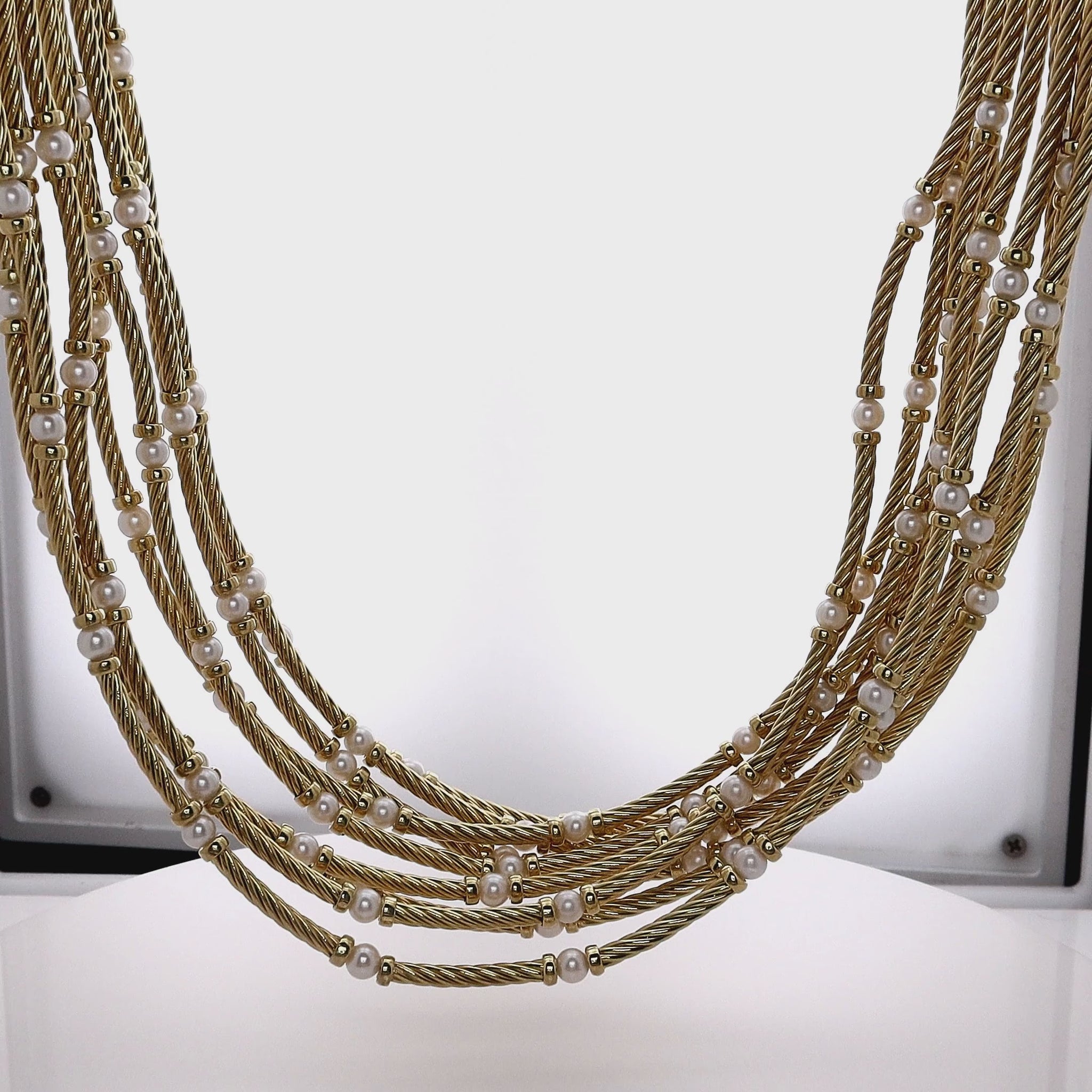 Estate David Yurman 18k Yellow Gold Multi Cable Strand Pearl Choker Necklace
