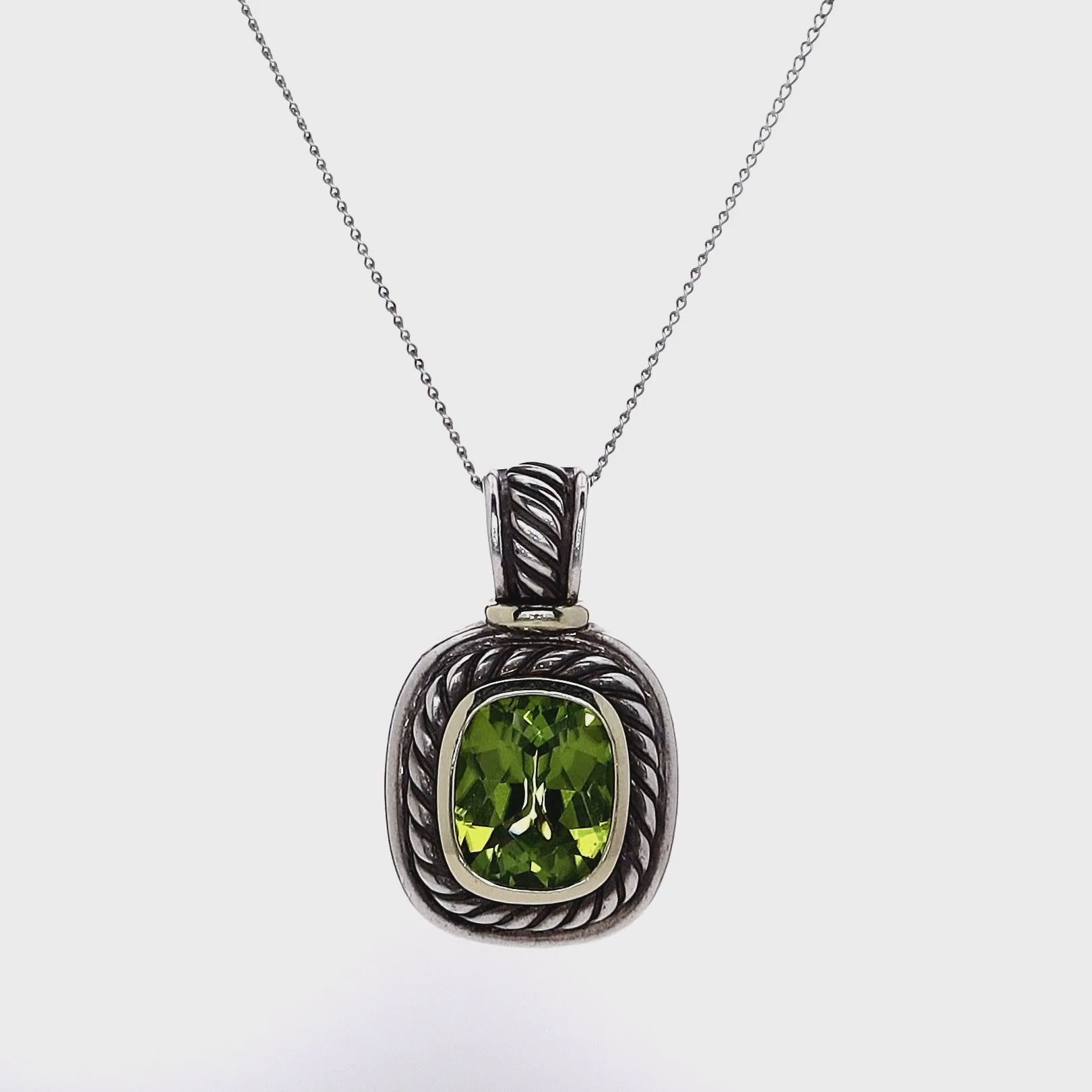 Estate David Yurman Sterling Silver Cushion Peridot Enhancer Pendant *No Chain*