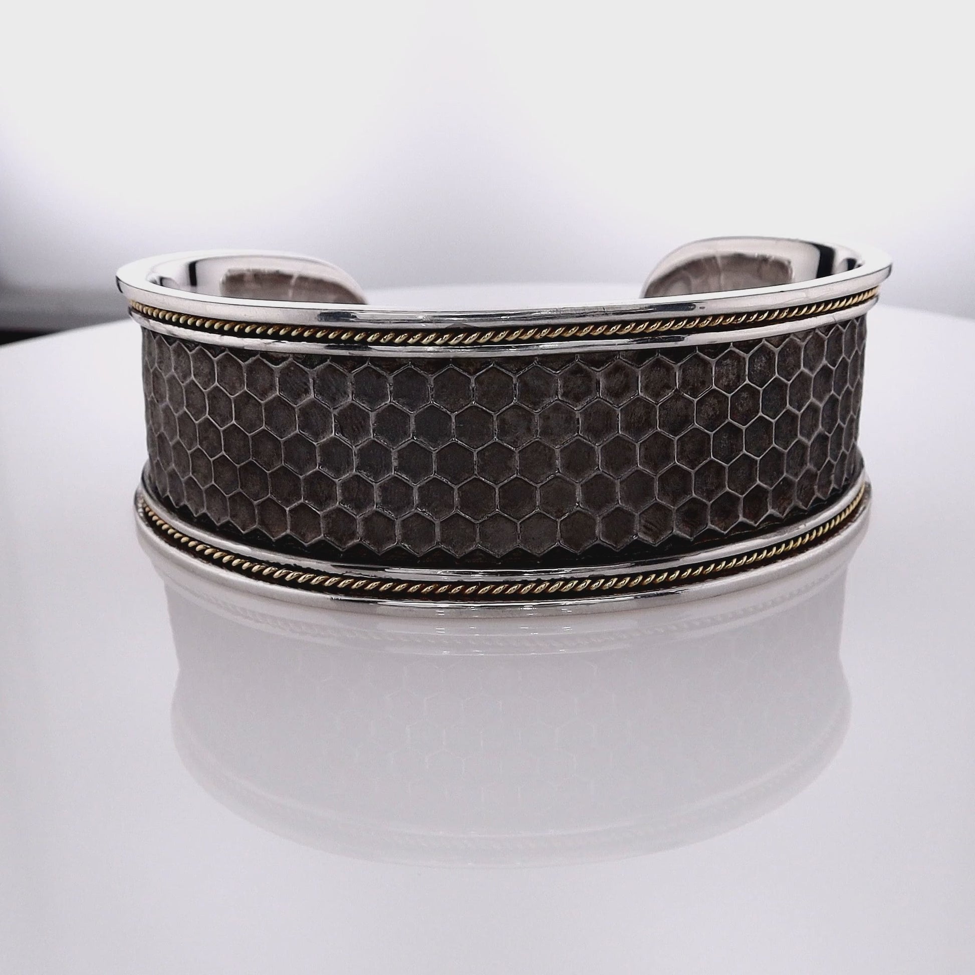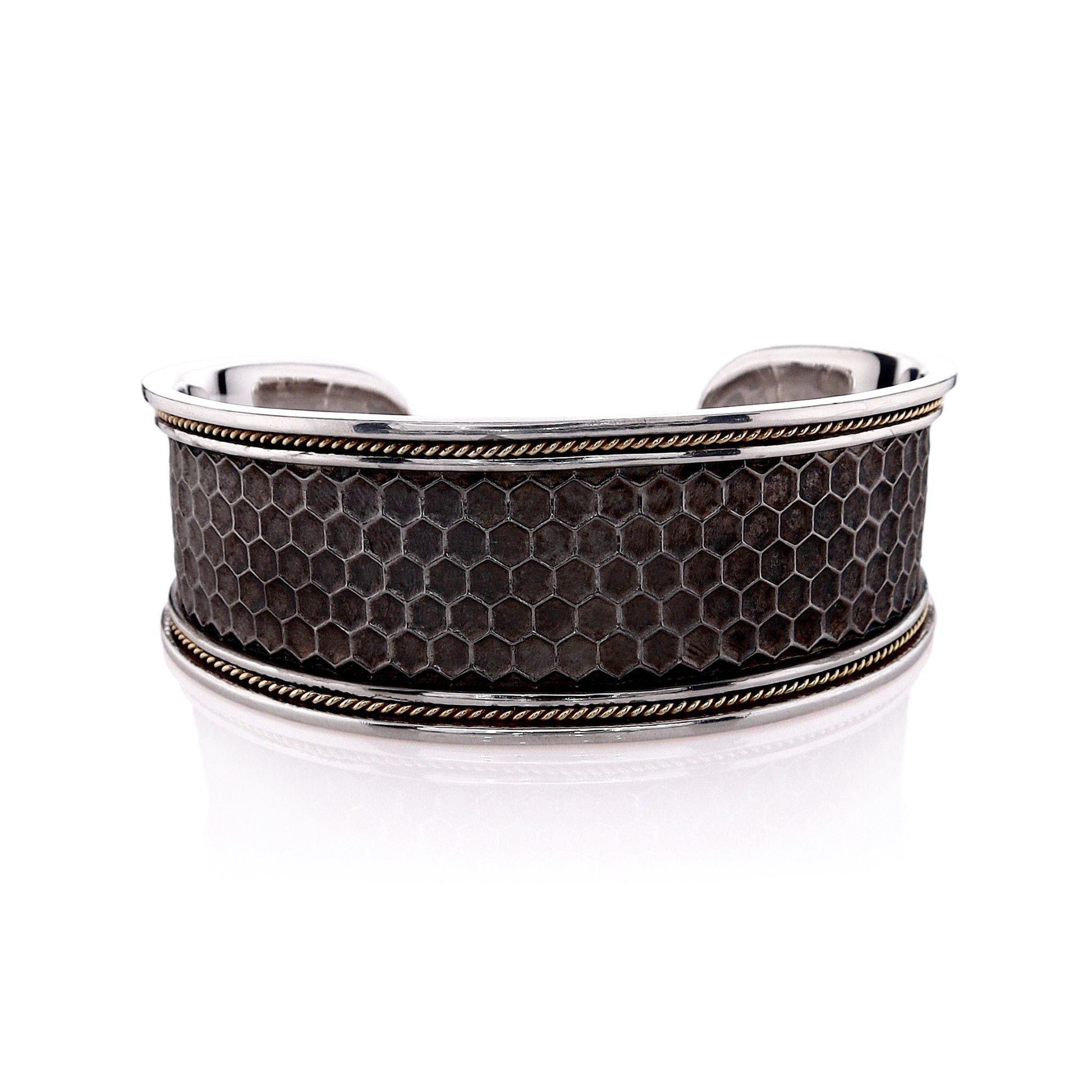 Estate Eli Jewels Sterling Silver Antiqued Honeycomb Design Wide Cuff Bracelet