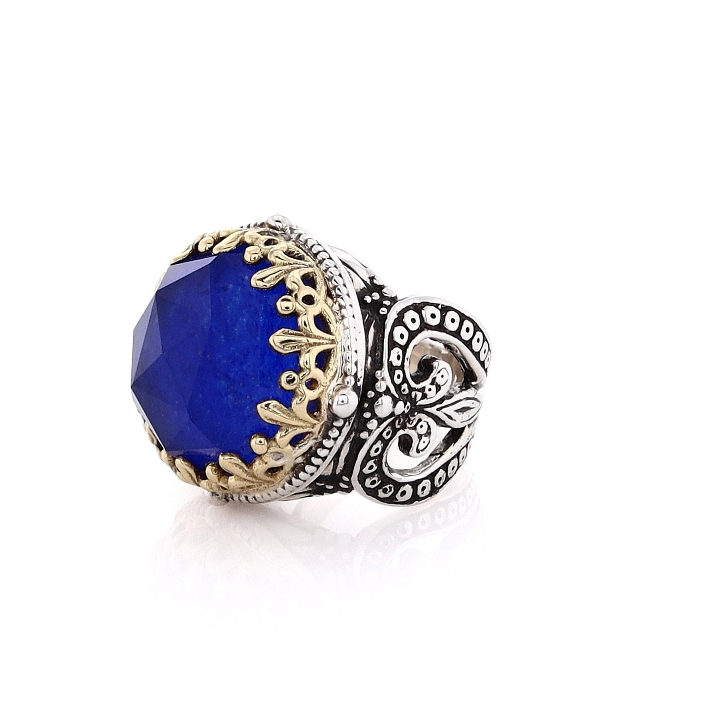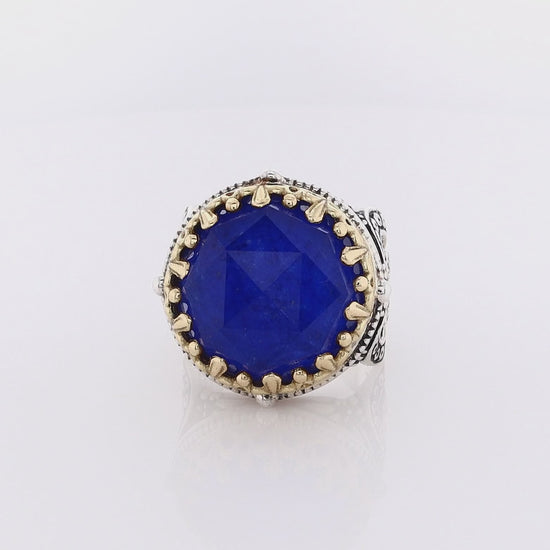 Estate Konstantino Sterling Silver and 18 Karat Yellow Gold Round Lapis Doublet Ring