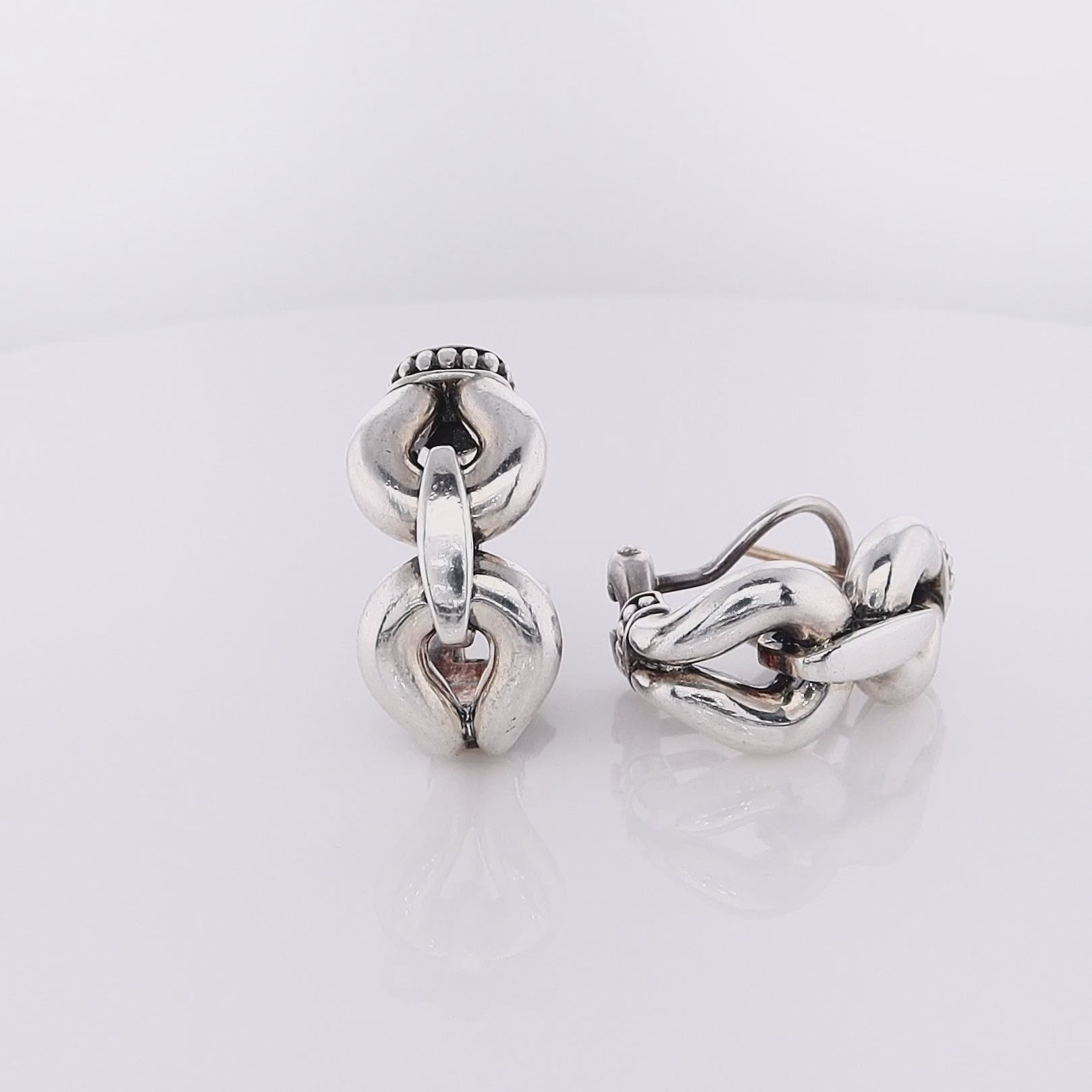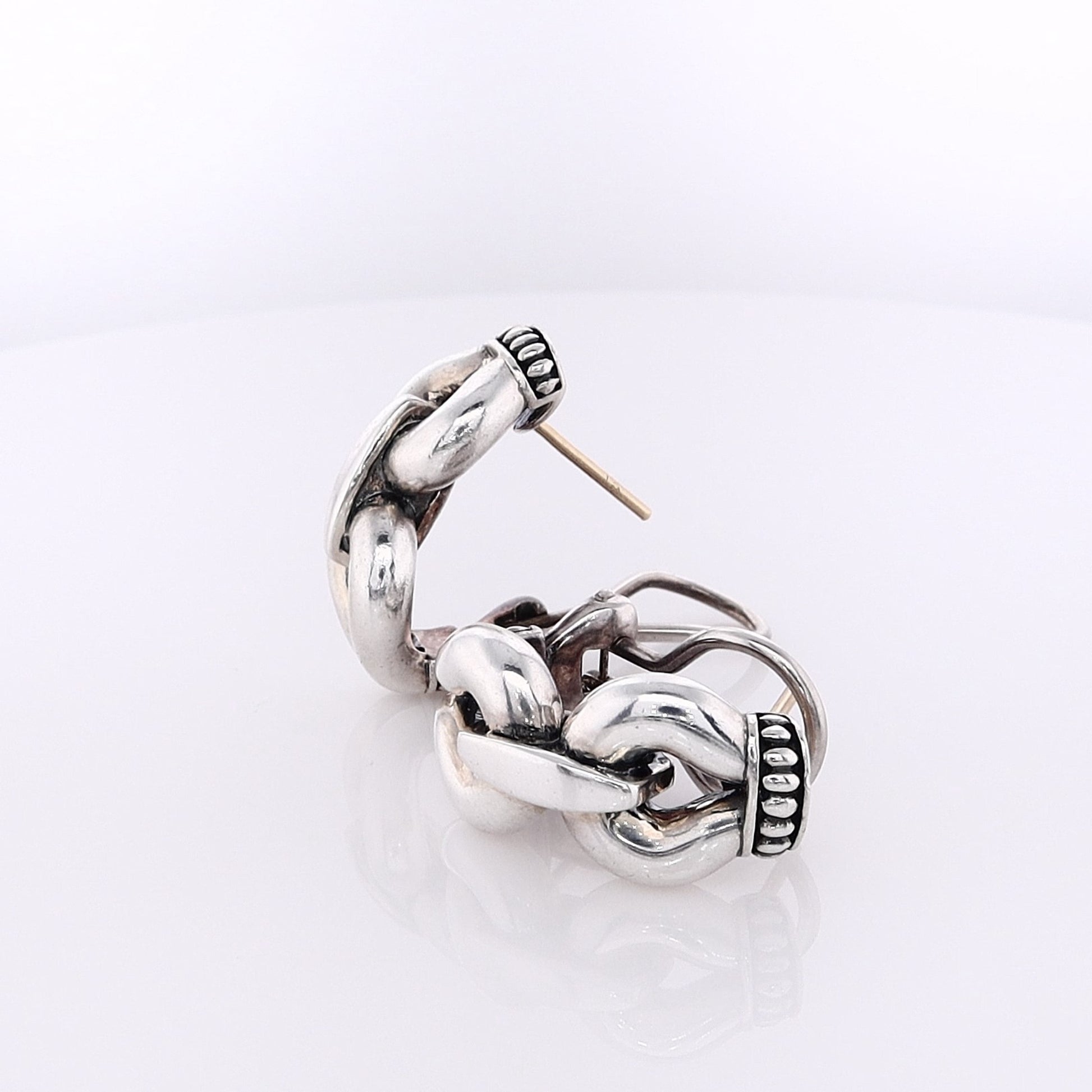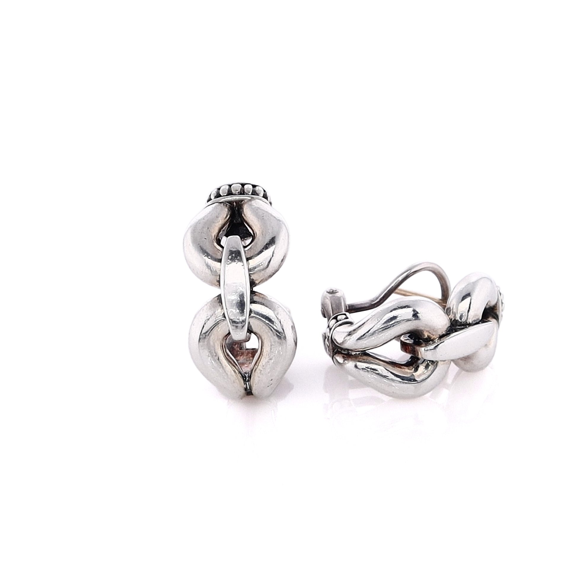 Estate Lagos Sterling Silver Derby Buckle Omega Back Earrings