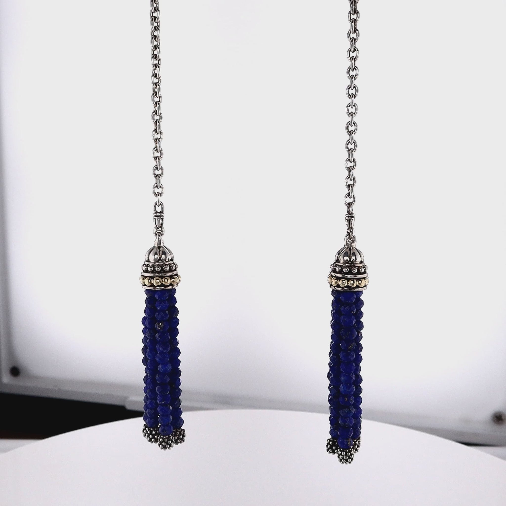 Estate Lagos Two-Tone Caviar Icon 42" Double Lapis Tassel Lariat Station Pendant Necklace
