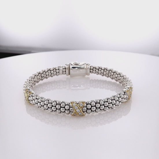 Estate Lagos Two-Tone Three "X" Diamond Station Caviar Bracelet