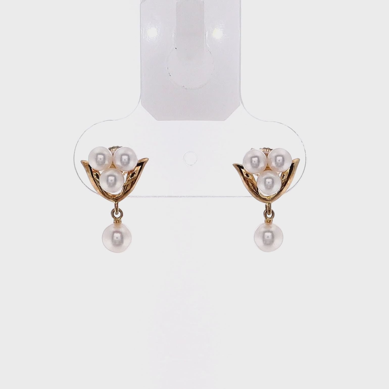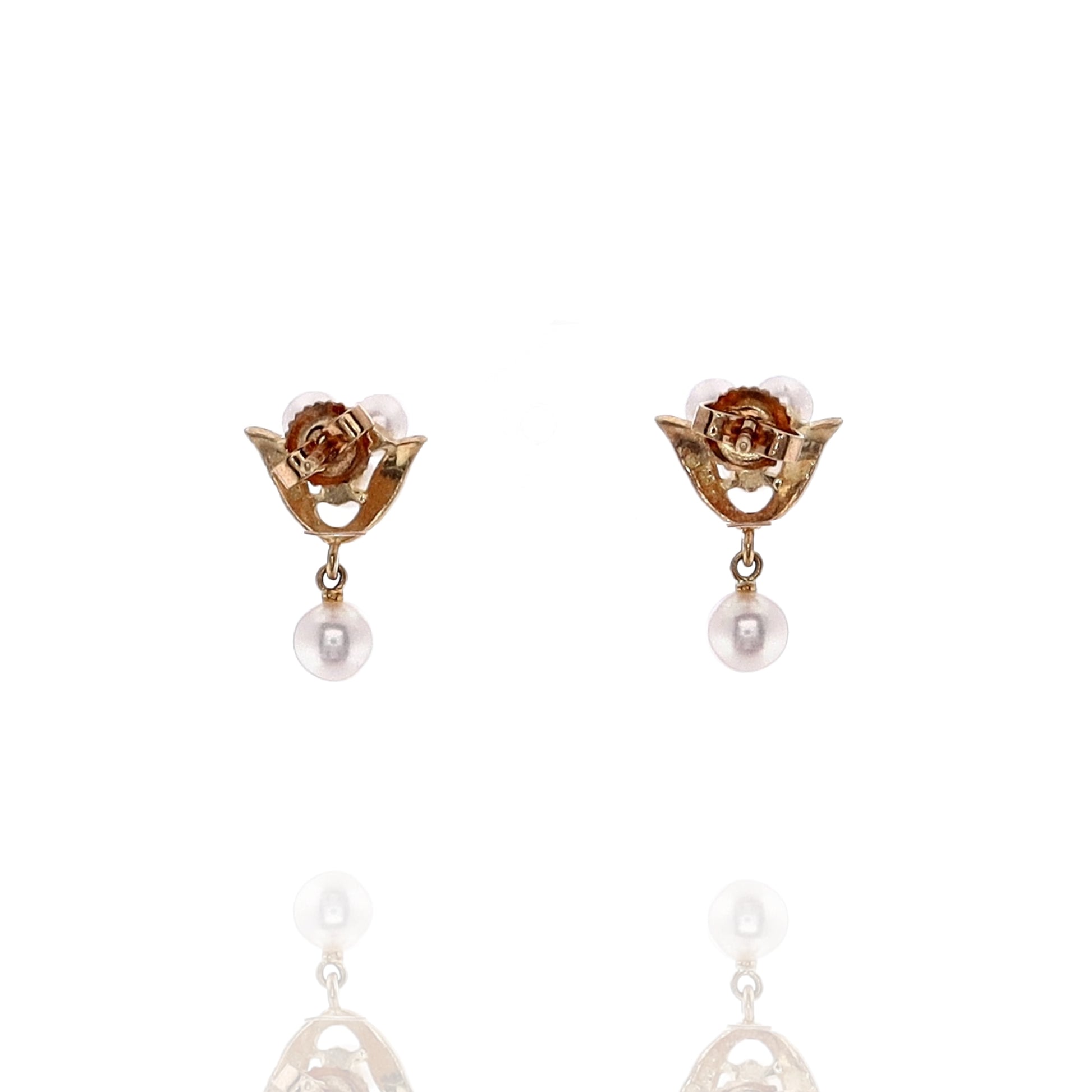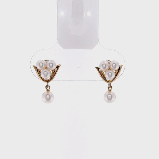Estate Mikimoto 18k Yellow Gold Cultured Pearl Dangle Earrings