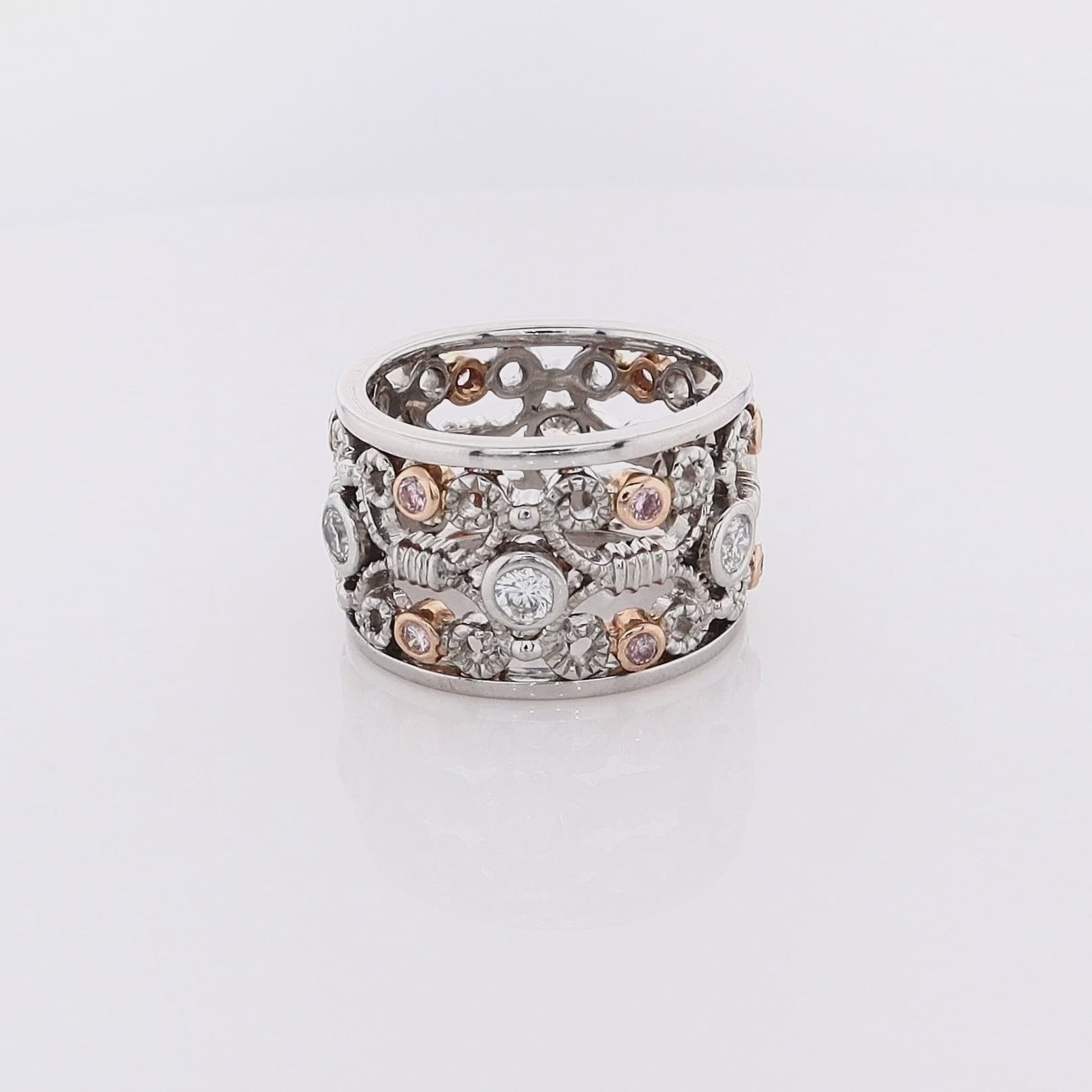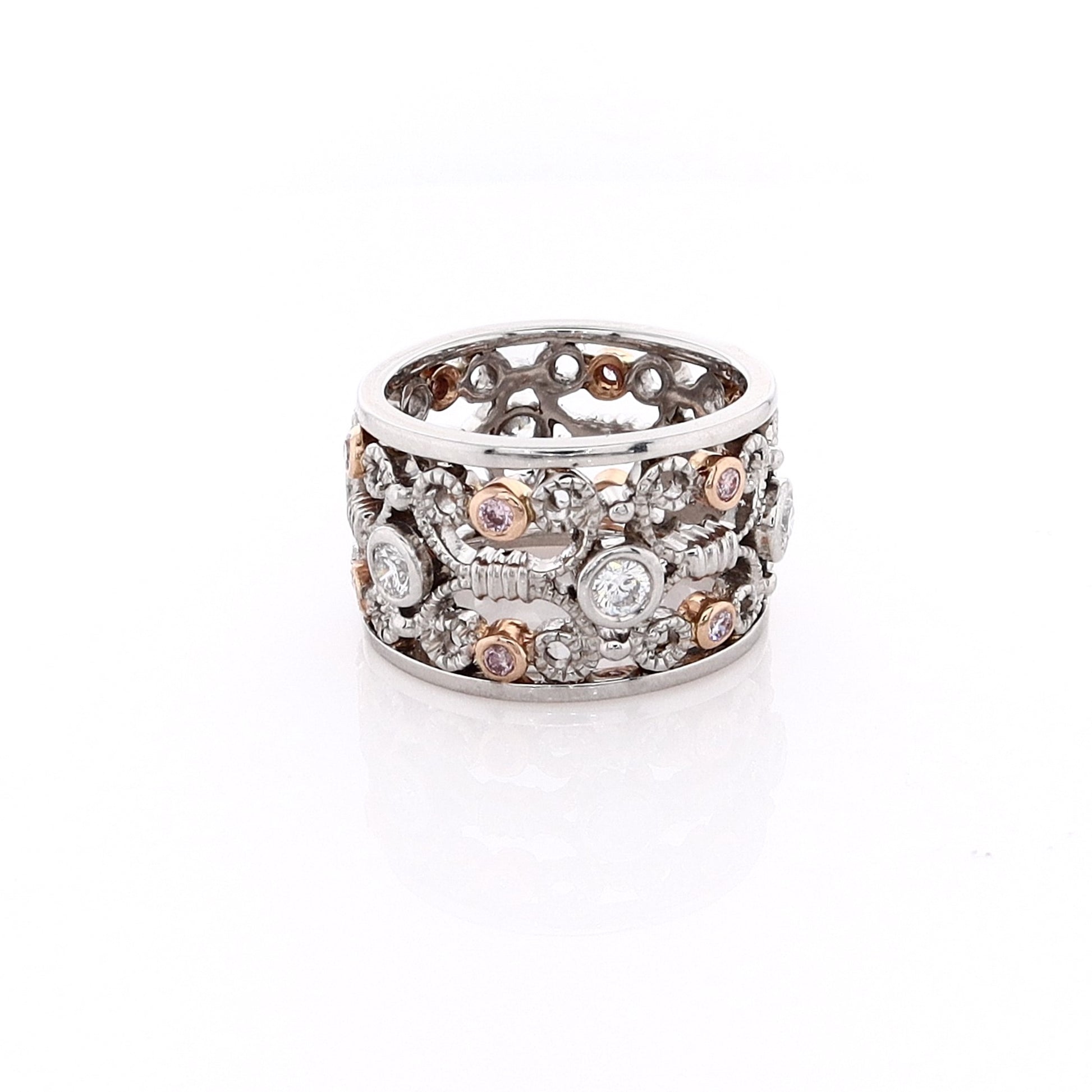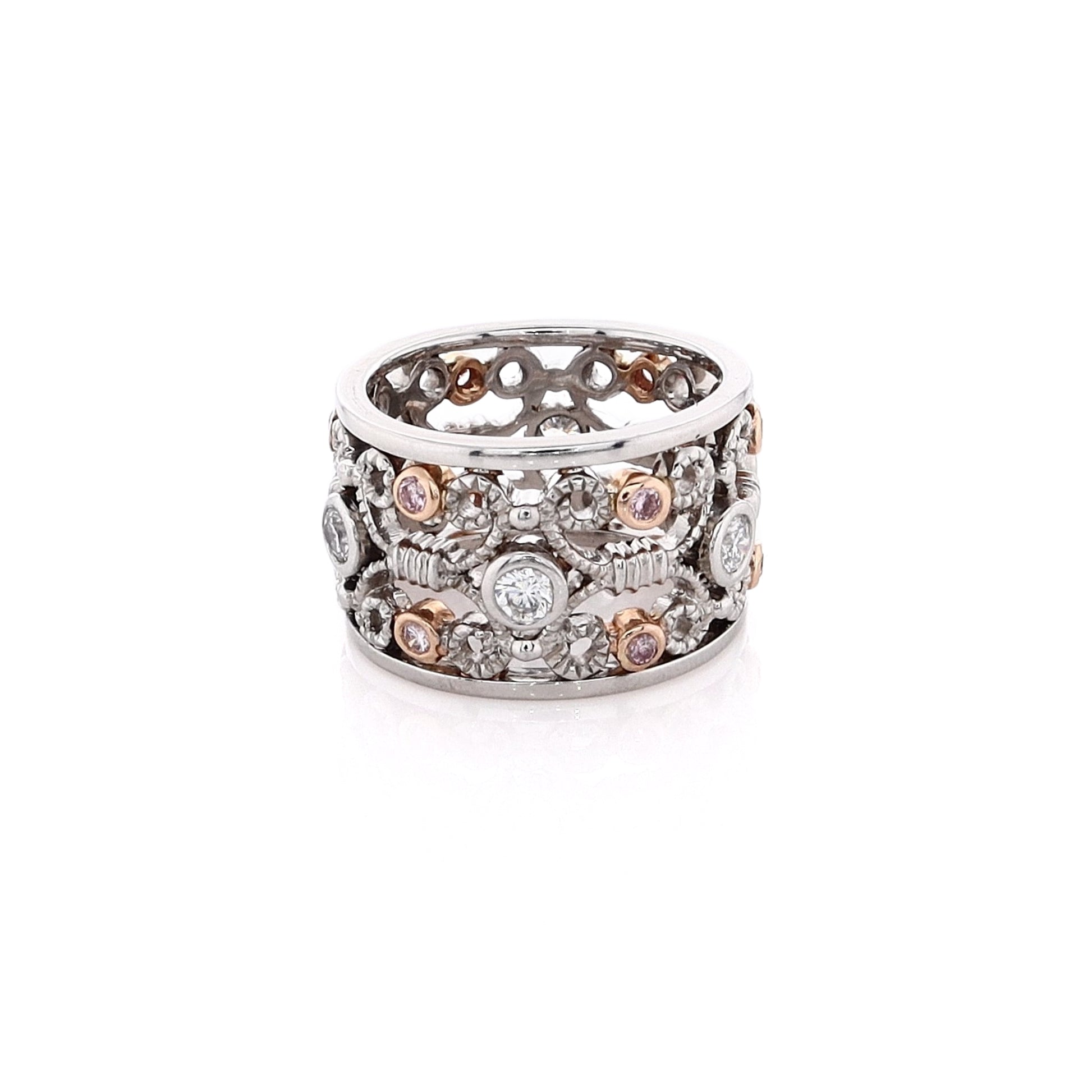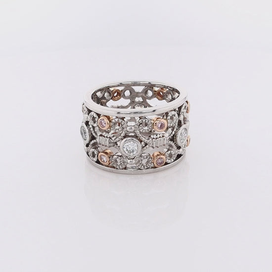 Estate Platinum and 18k Rose Gold Wide Band Open Scrollwork Diamond Ring