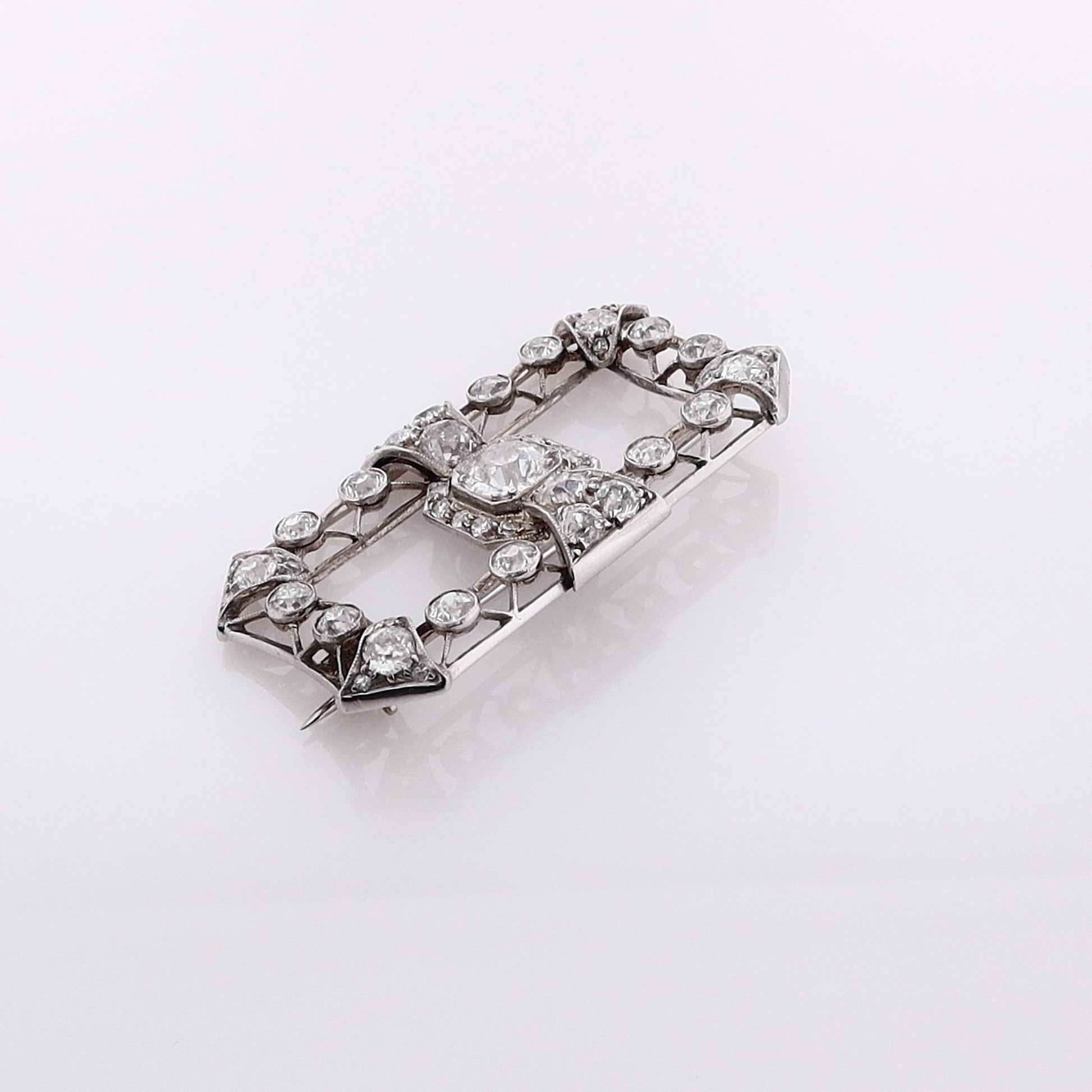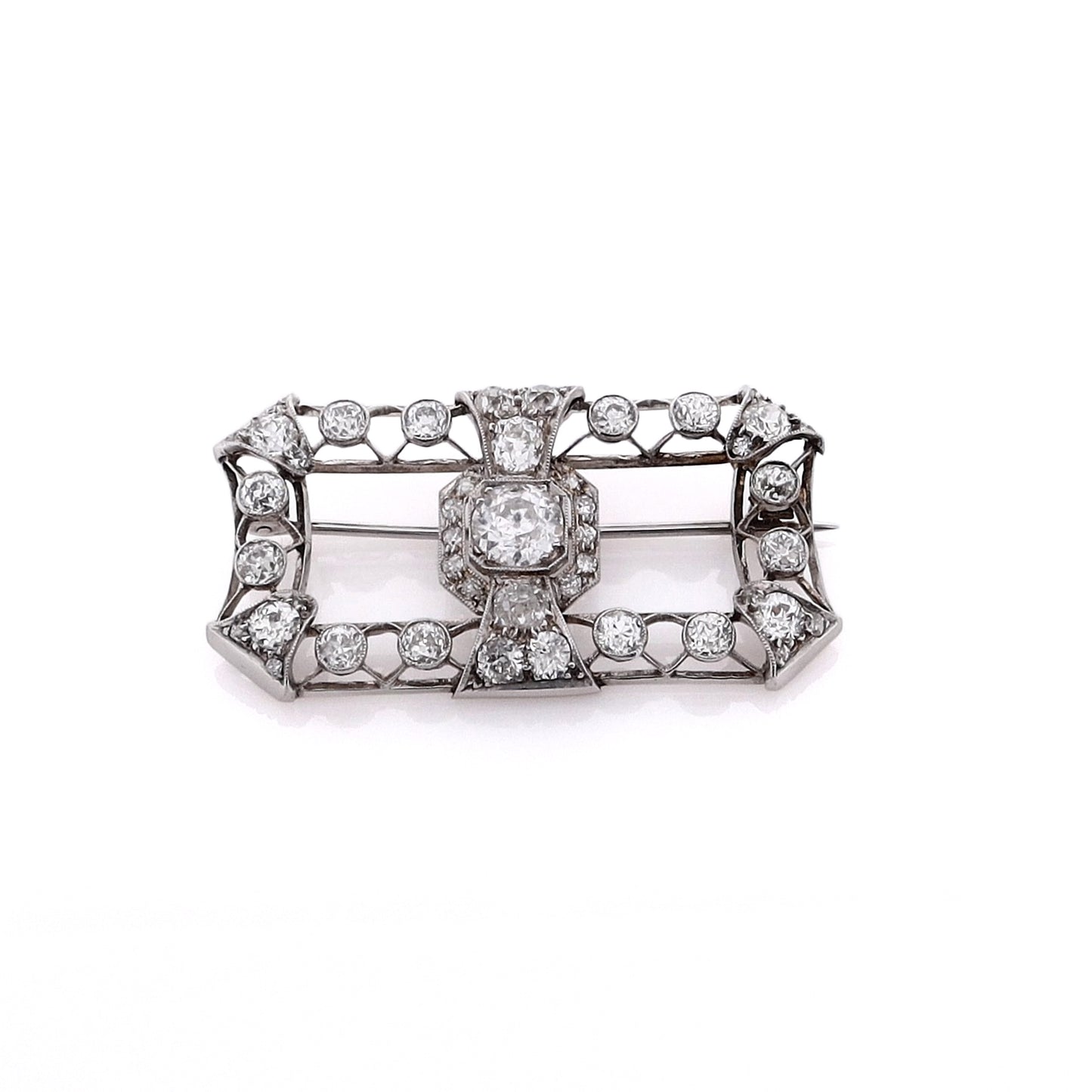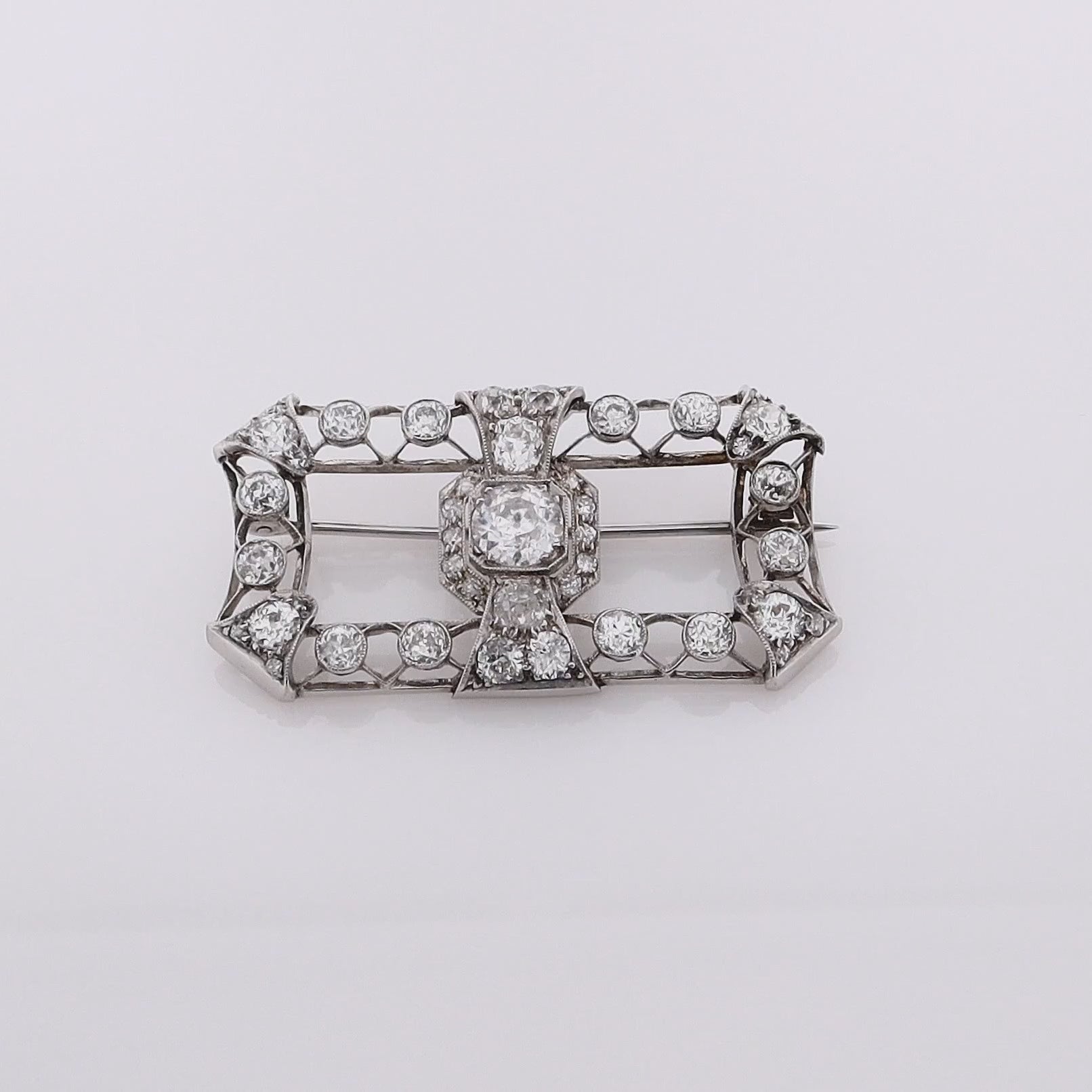 Estate Platinum and 18k White Gold Rectangle Diamond Pin
