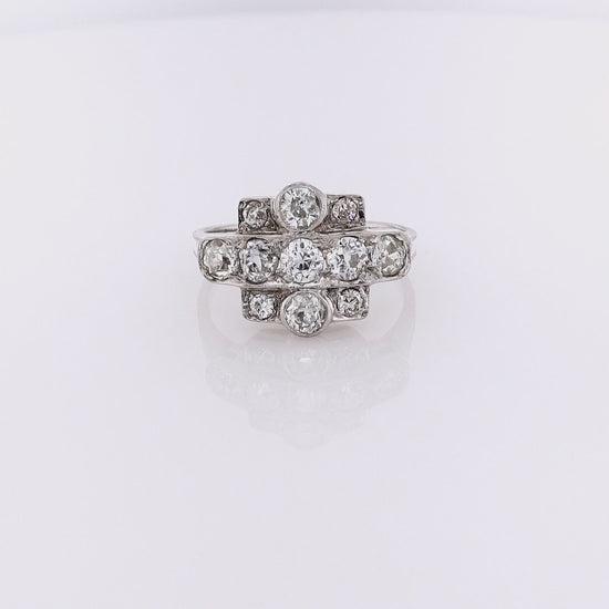 Estate Platinum and Old European Cut Diamonds 2 Bezel 7 Prong Set Ring