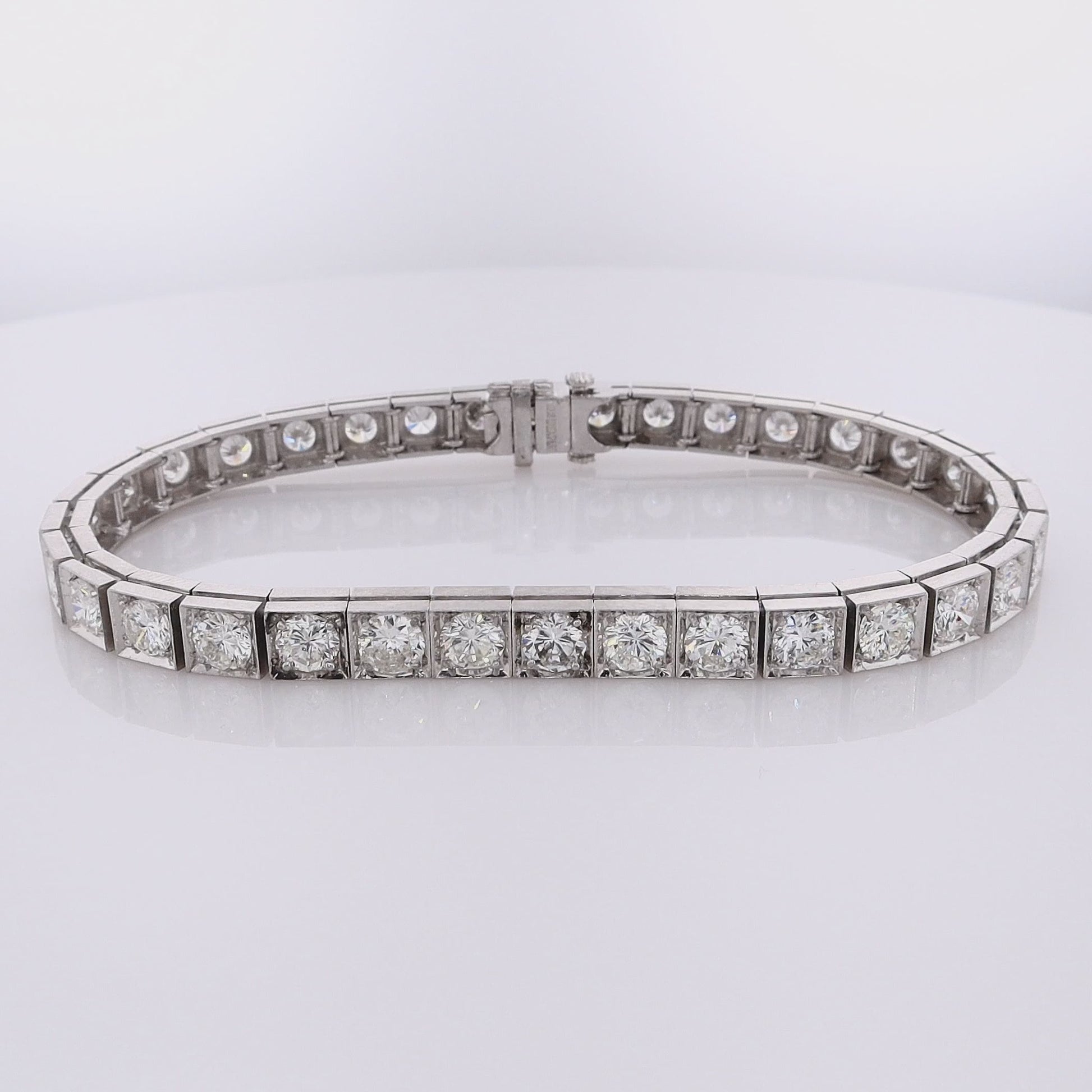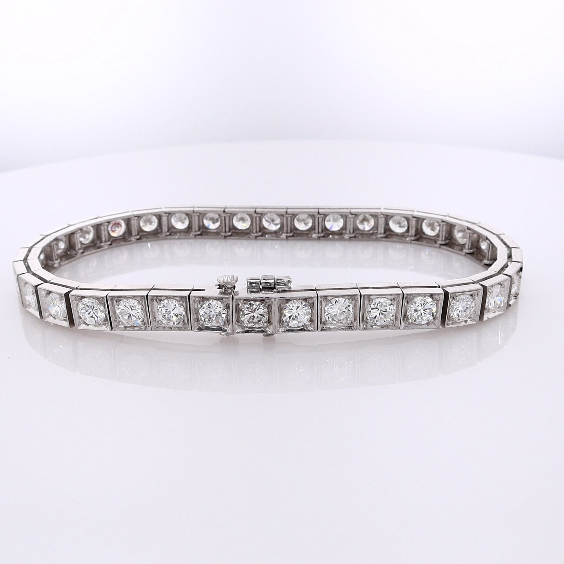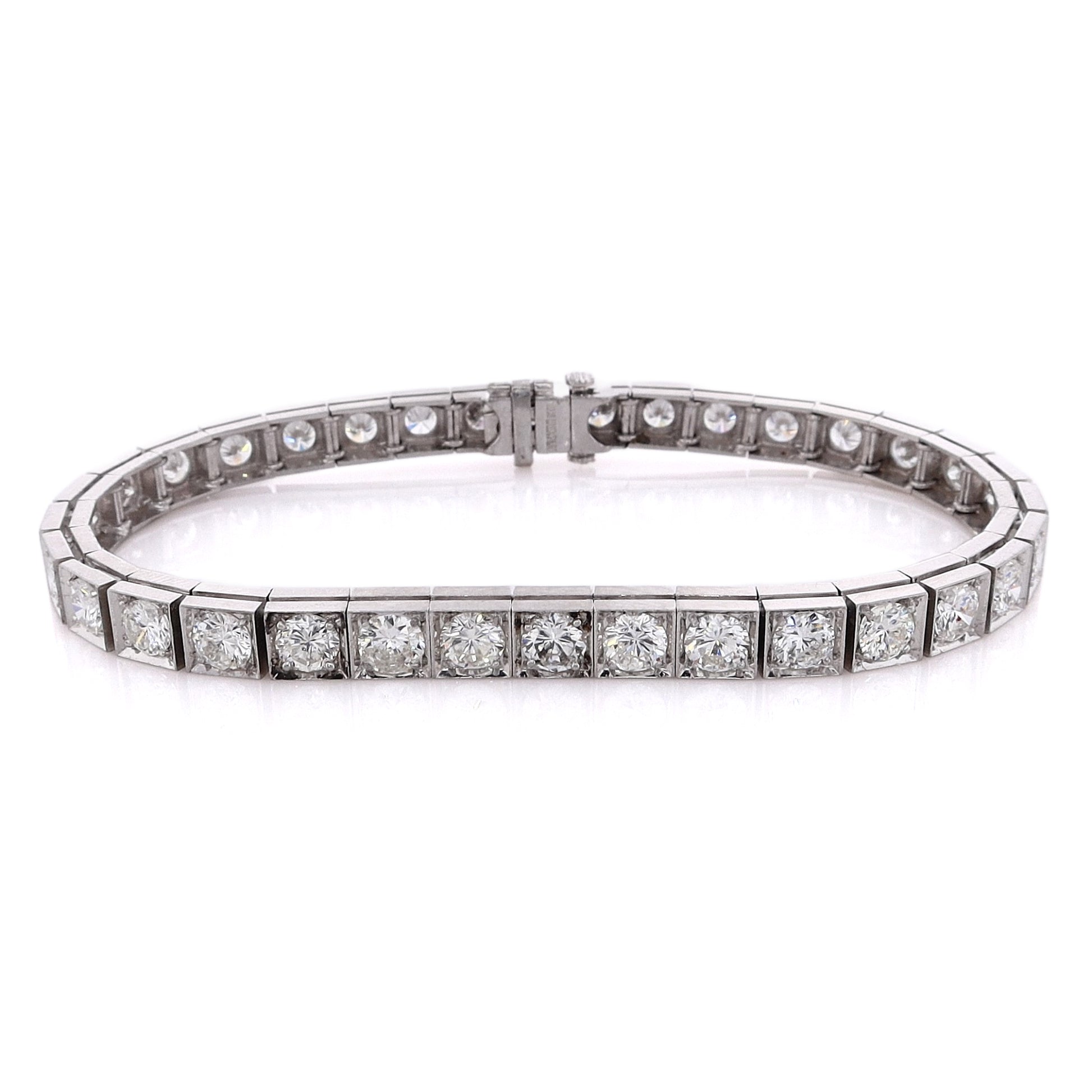 Estate Platinum Diamond Block Tennis Style Bracelet