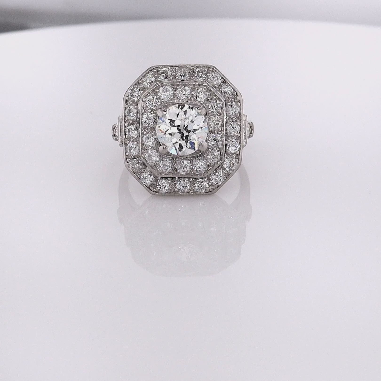 Double Halo 34 Round Brilliant Cut Diamonds, total weight 0.68ct, G-H Color, SI Quality, I1 chips