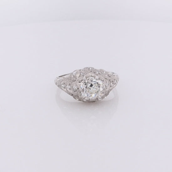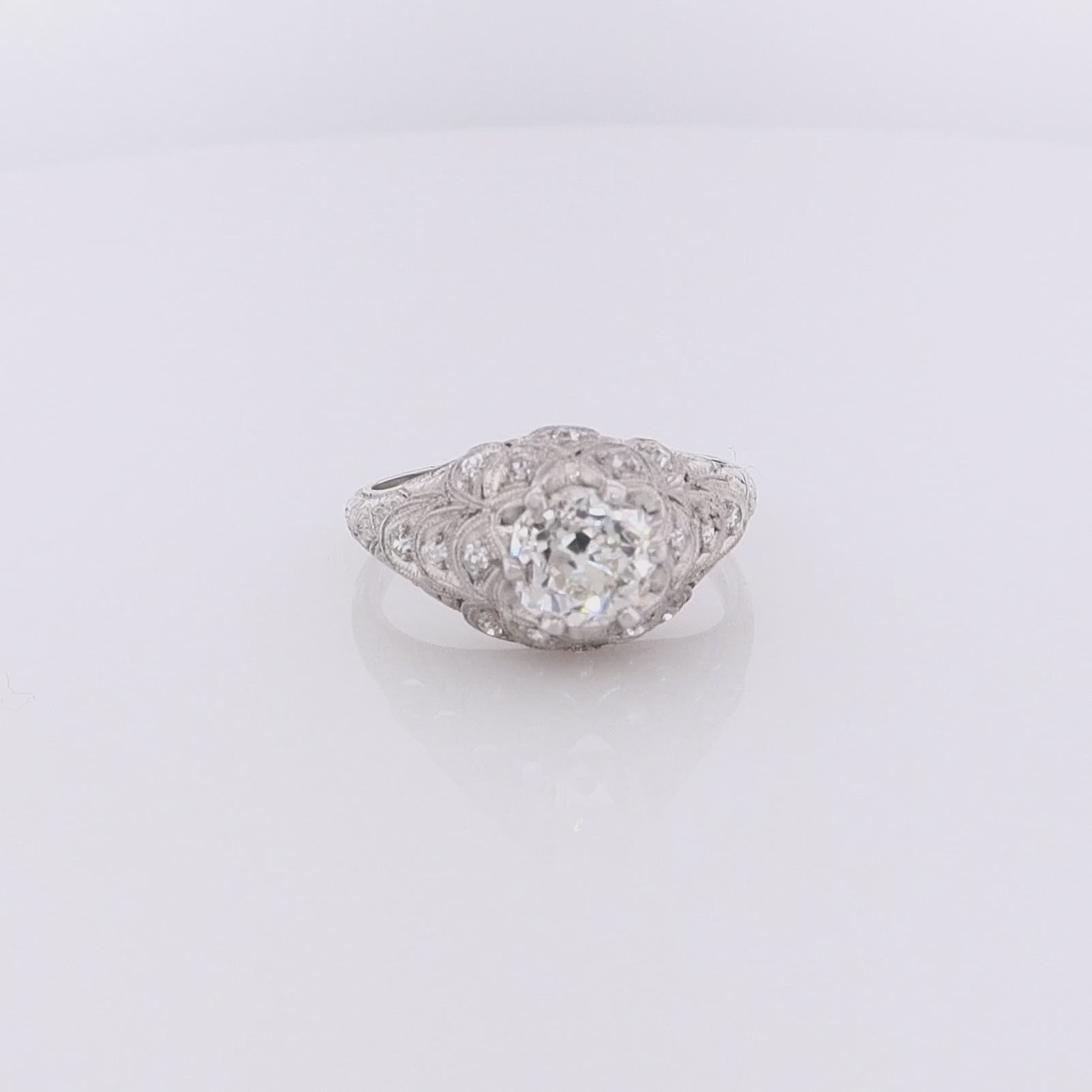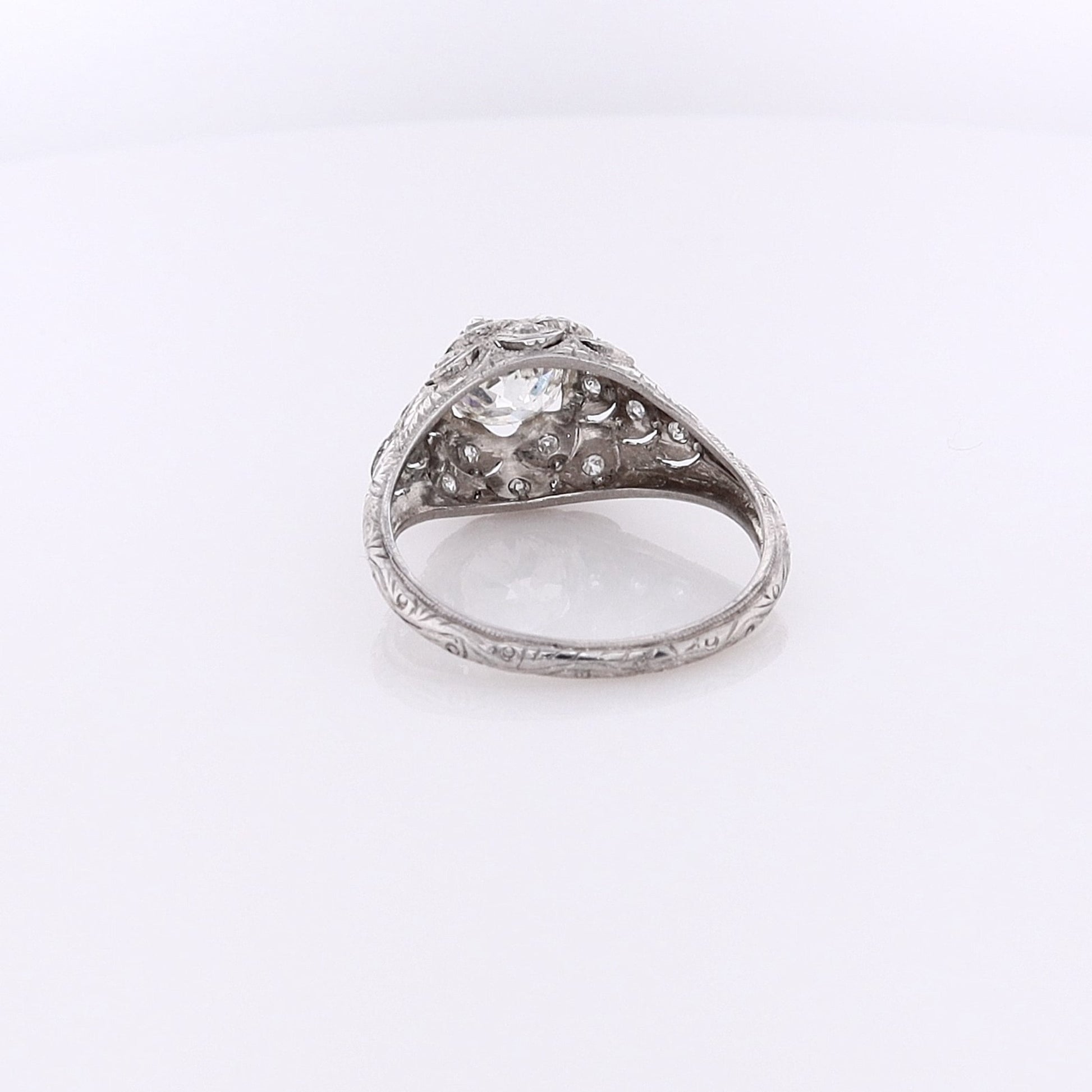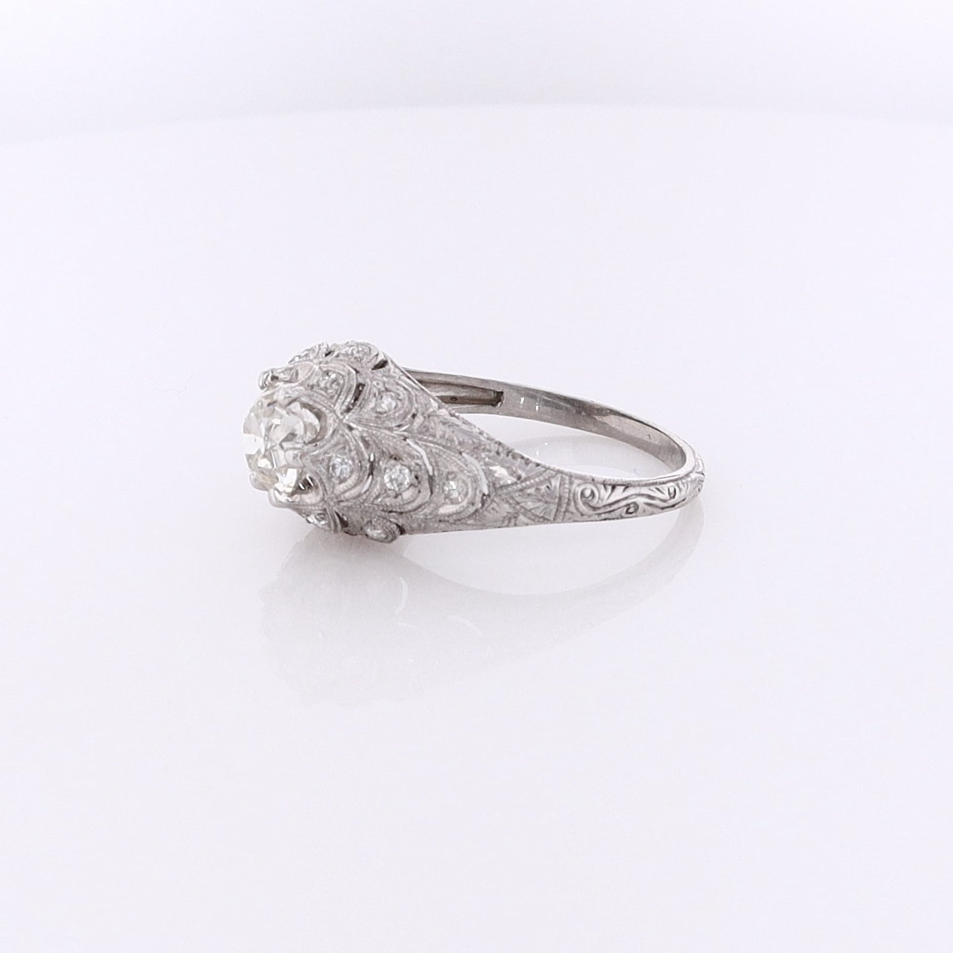 Estate Platinum Fish Scale Design Engraved and Milgrain Diamond Ring
