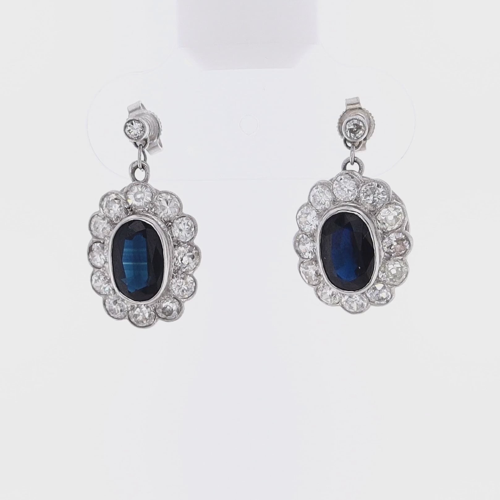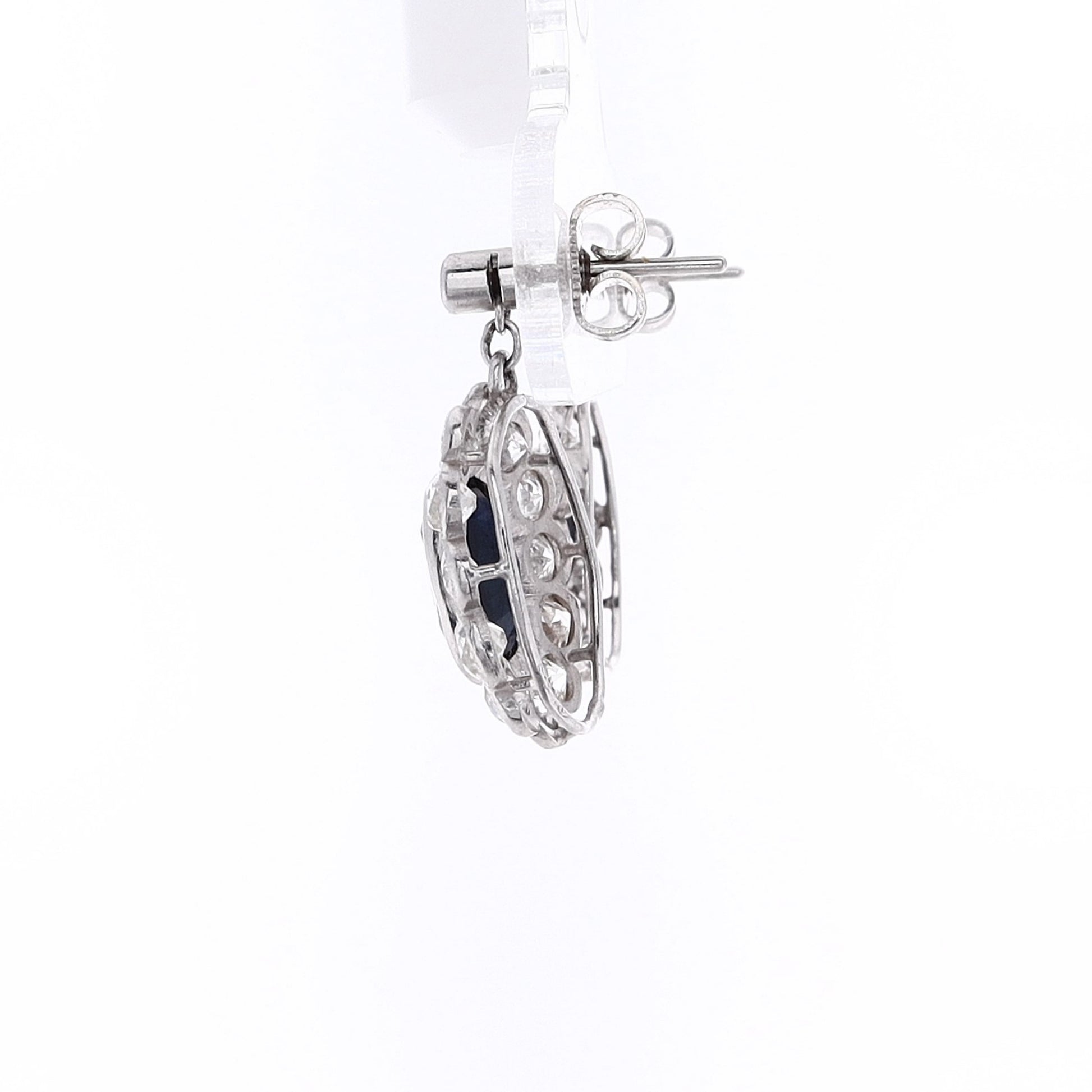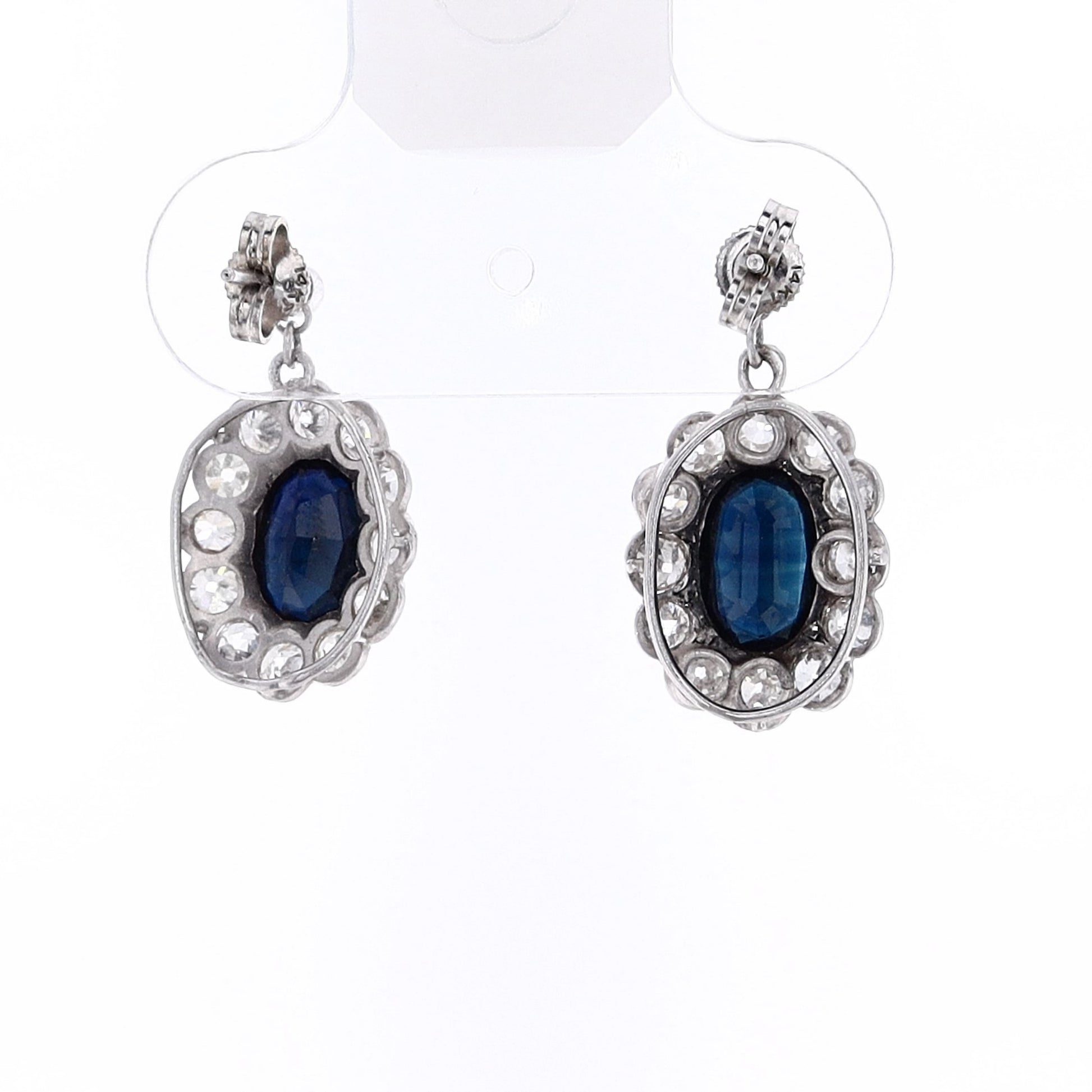 Estate Platinum Sapphire and Diamond Dangle Earrings