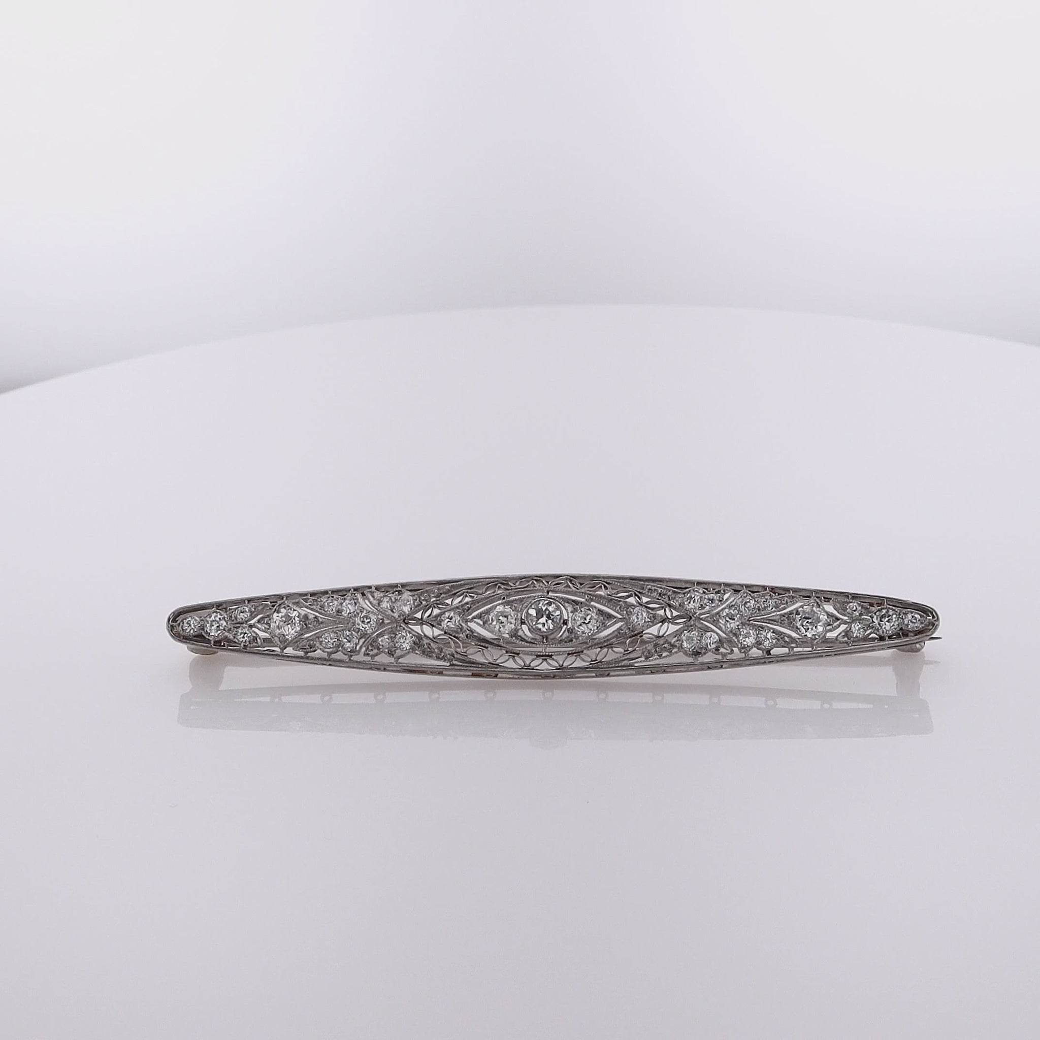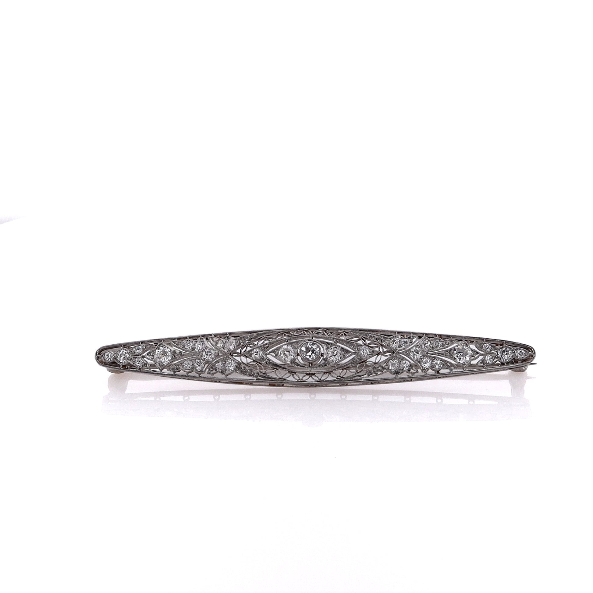 Estate Platinum Tapered Bar Diamond Filagree Milgrain Pin