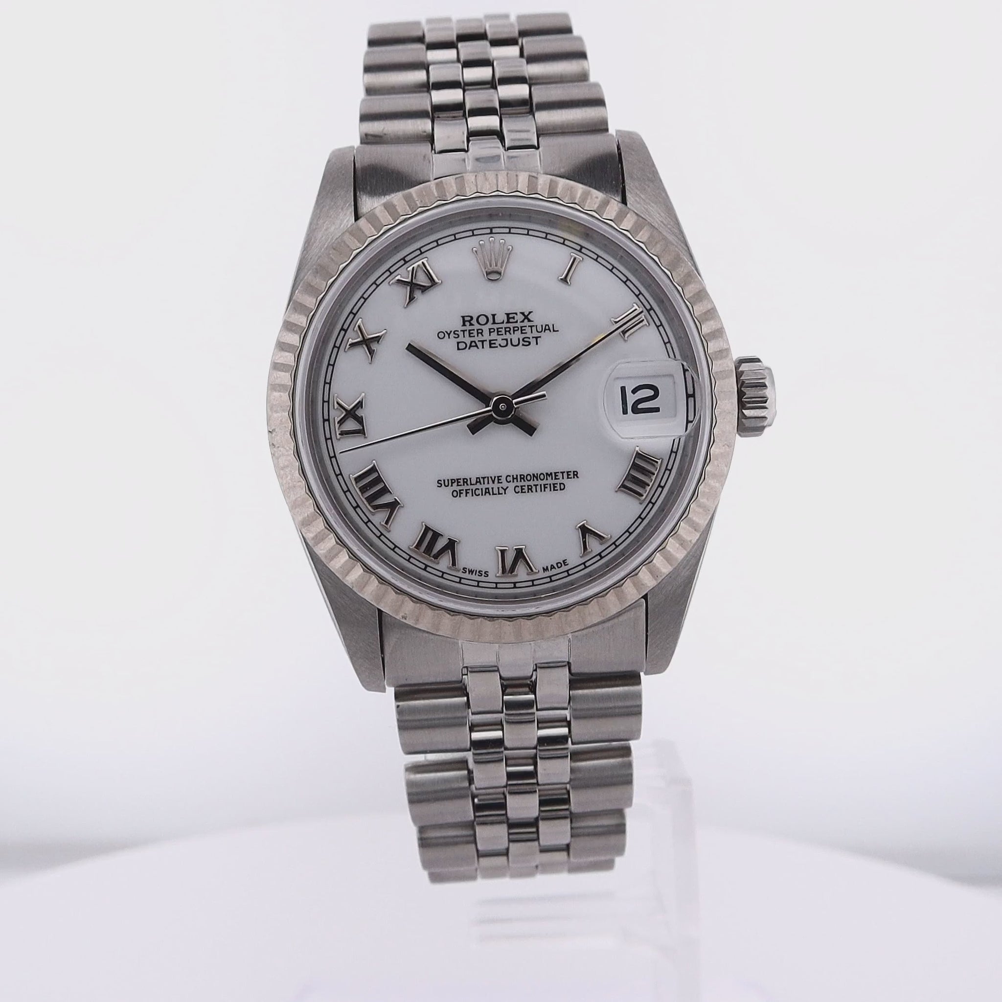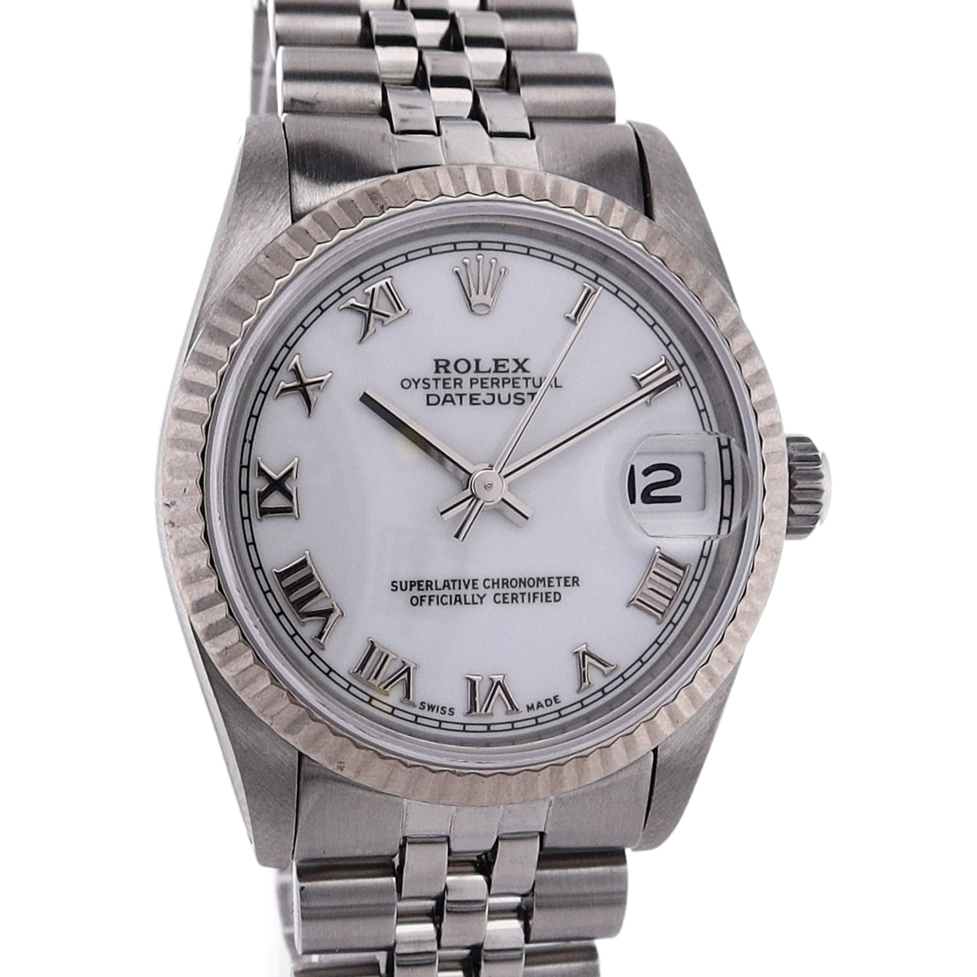Estate Rolex Stainless Steel and 18 Karat White Gold White Roman Dial 68274 C.1984