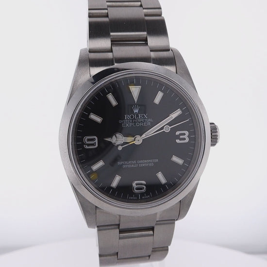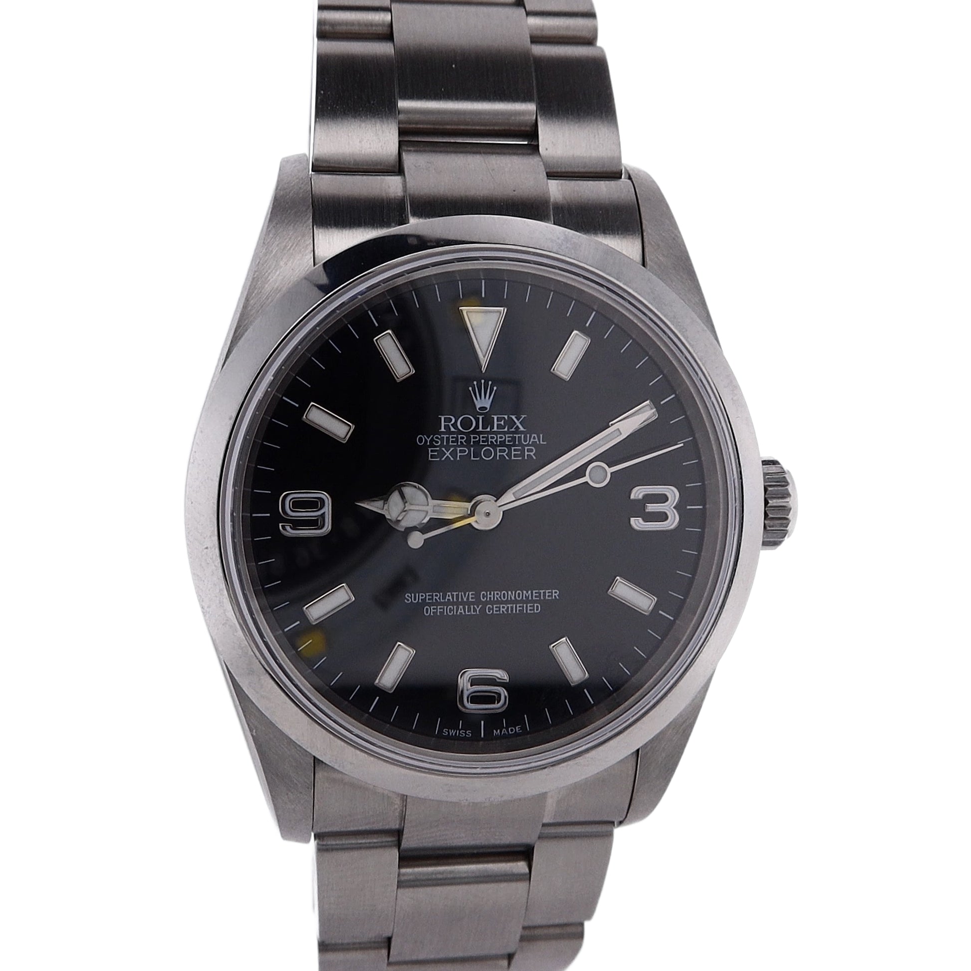 Estate Rolex Stainless Steel Gents Explorer Black Stick Dial 114270 With Card C.2003