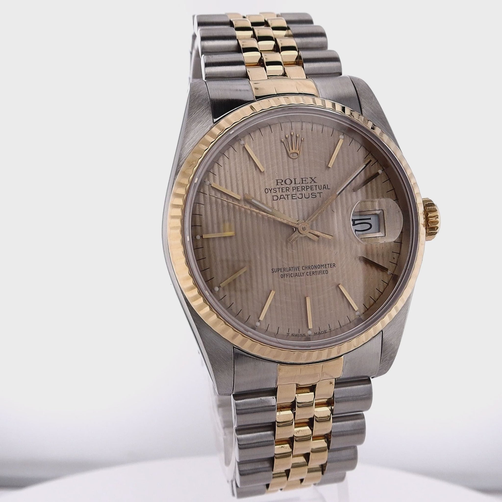 Estate Rolex Two-Tone Gents OPDJ Champagne Tapestry Dial 16233 With Box C.1988