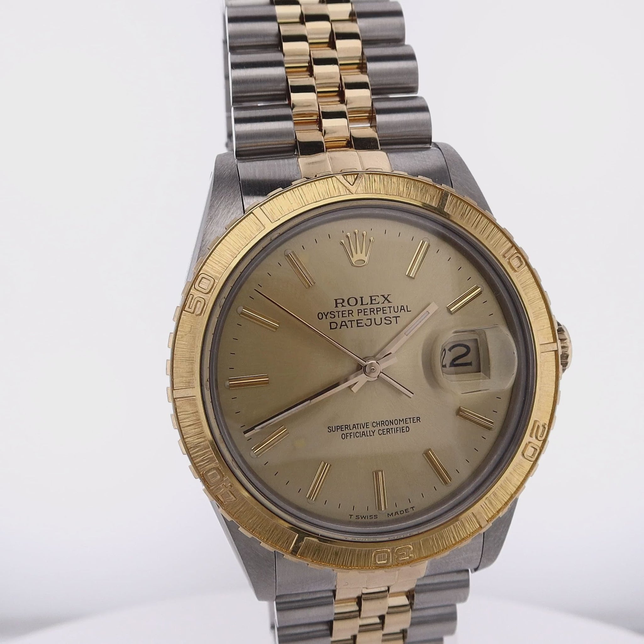 Estate Rolex Two-Tone Gents Oyster Perpetual Date Just Turn-O-Graph Champagne Dial Engine Turned 16253 C.1986 With Box And Paper
