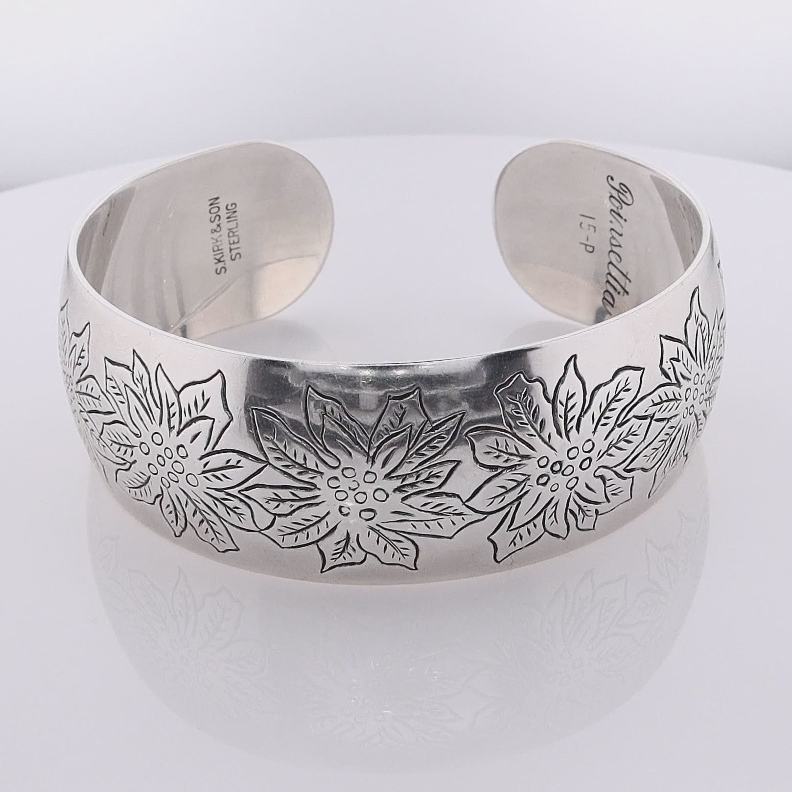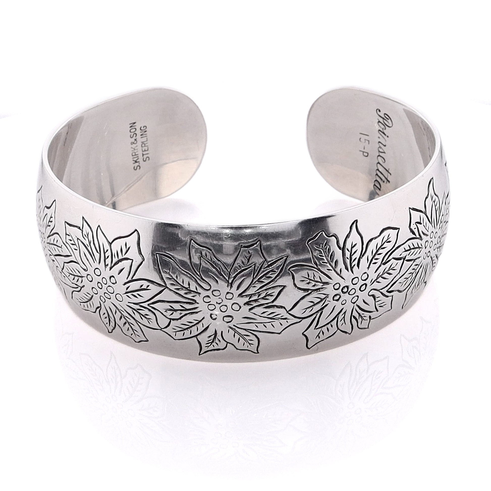 Estate S.Kirk & Son Sterling Silver Flower of the Month Cuff Bracelet