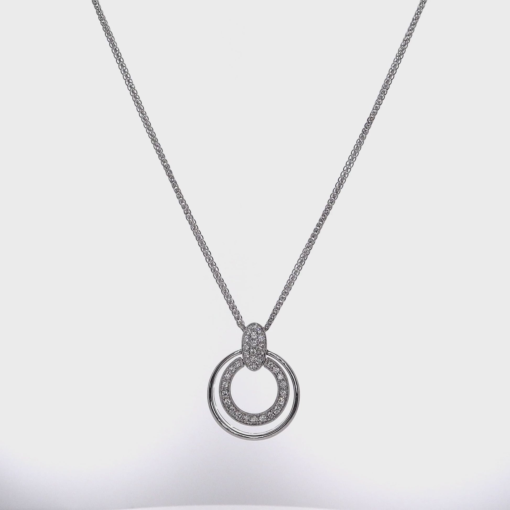 Estate Simon G 18k White Gold Double Circle Diamond Chain Pendant Necklace