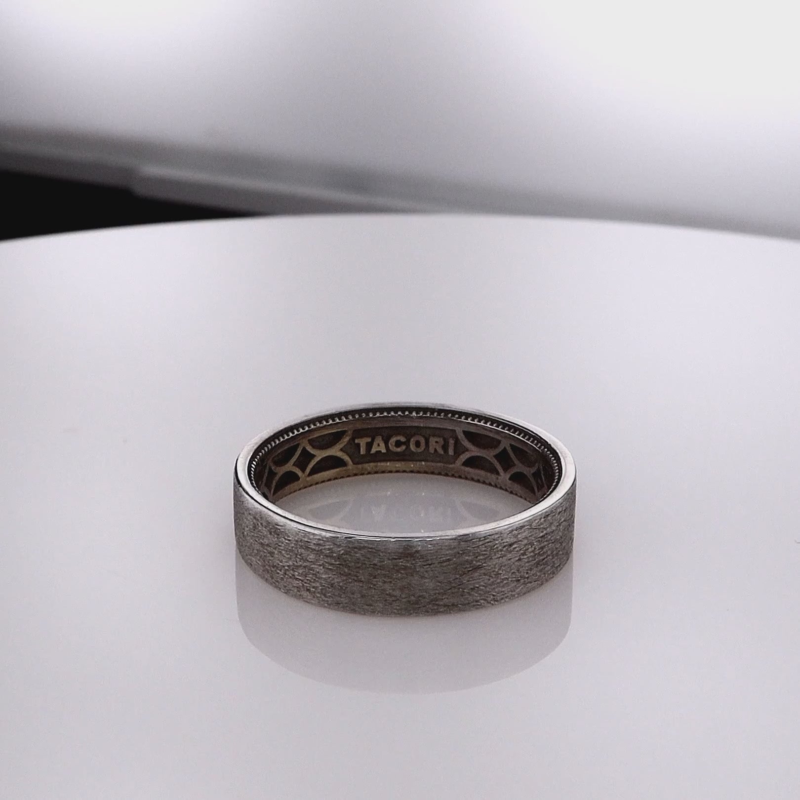 Estate Tacori 14k White Gold Gents Brushed Milgrain Band