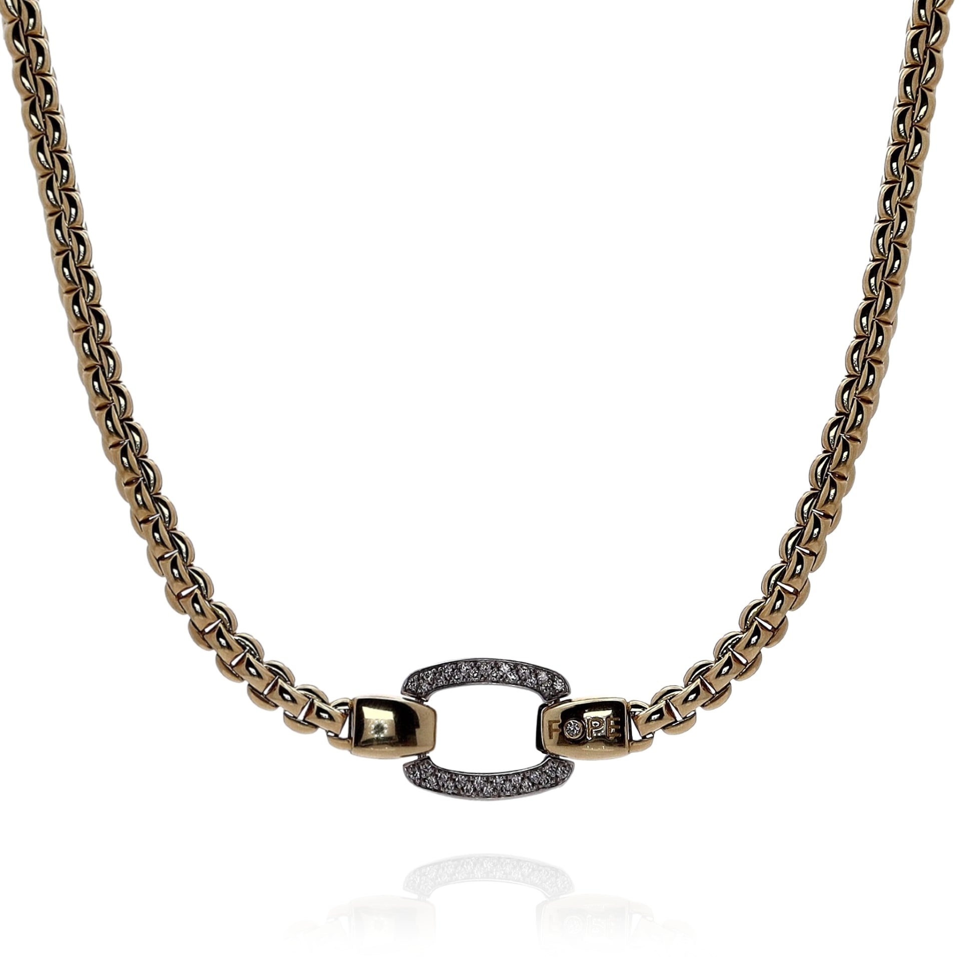Fope 18k Gold Eka Buckle Style Center Pave Diamond Necklace