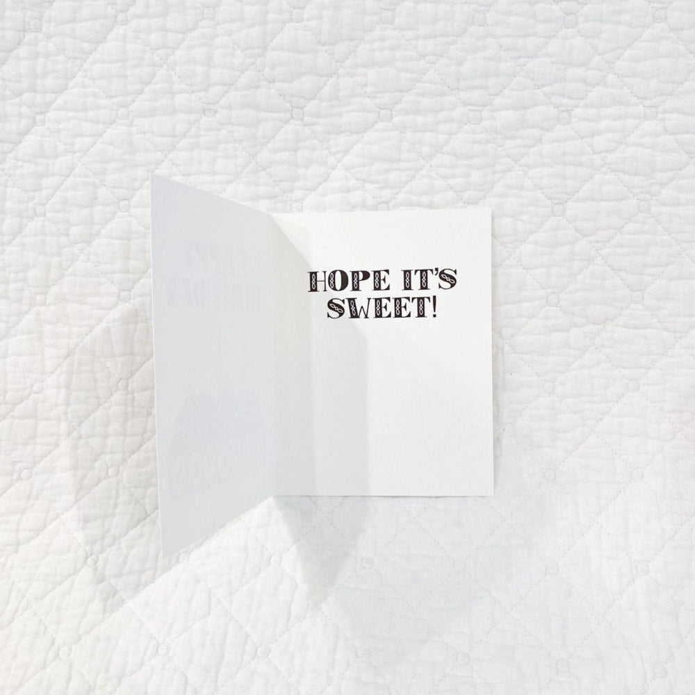 This card is an A2 (4 1/4" x 5 1/2") card printed on high quality #110 paper and includes a craft matching envelope. The inside message reads "Hope it's Sweet!"