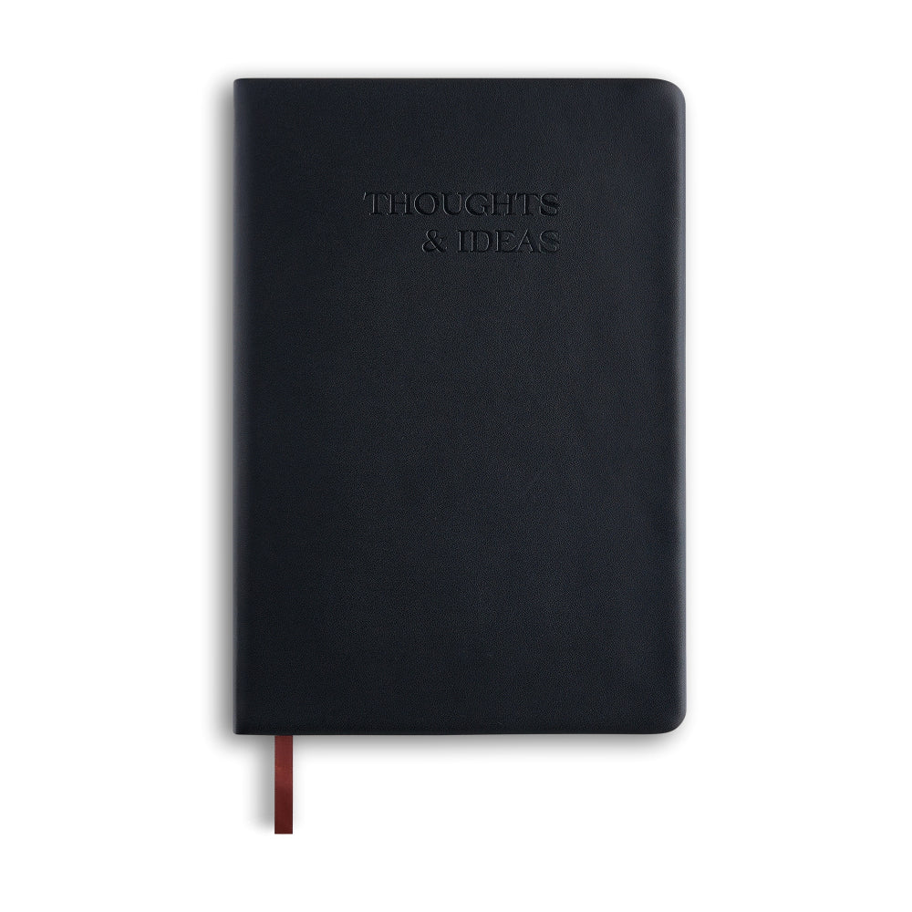 Enhance your writing experience with our black leather notebook, featuring lined pages and a refined blind deboss expression. The elegant leather cover and understated design offer a touch of sophistication and durability, making it a perfect companion for capturing your thoughts.