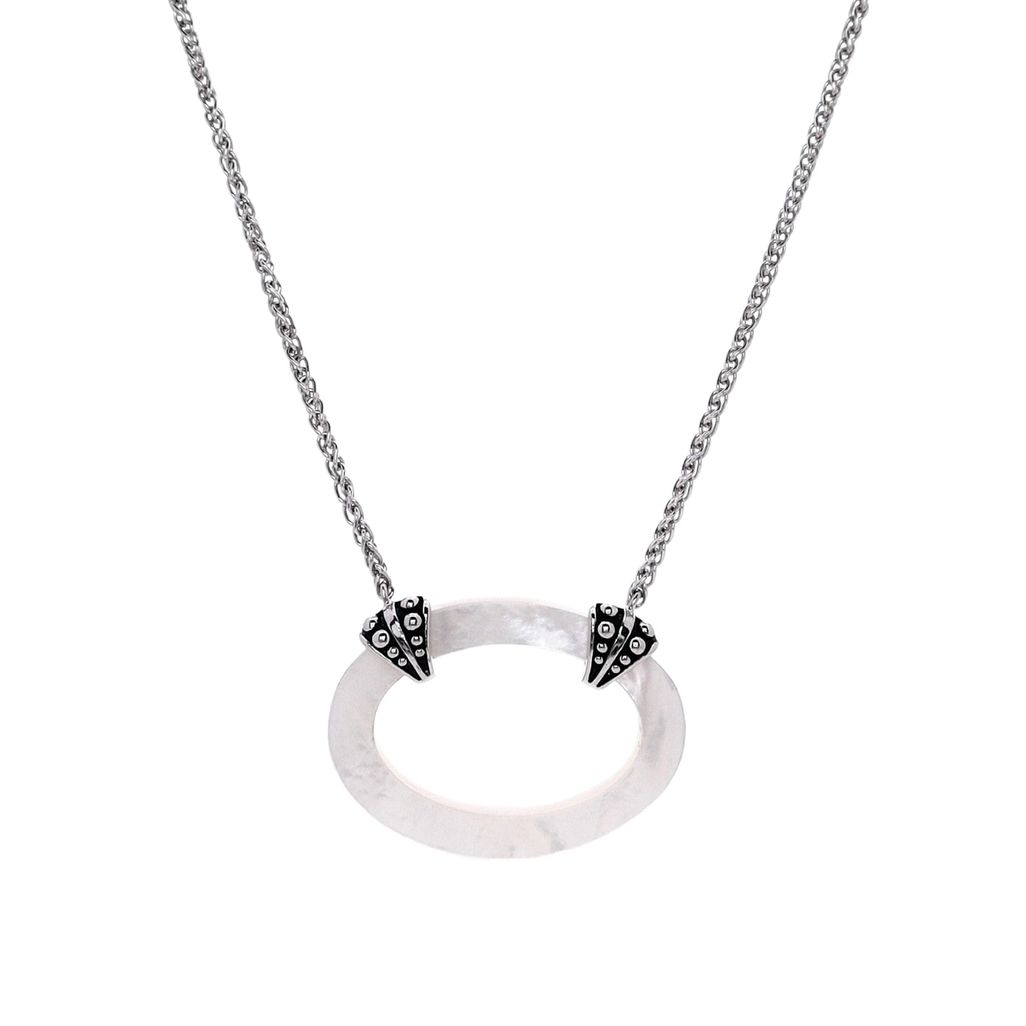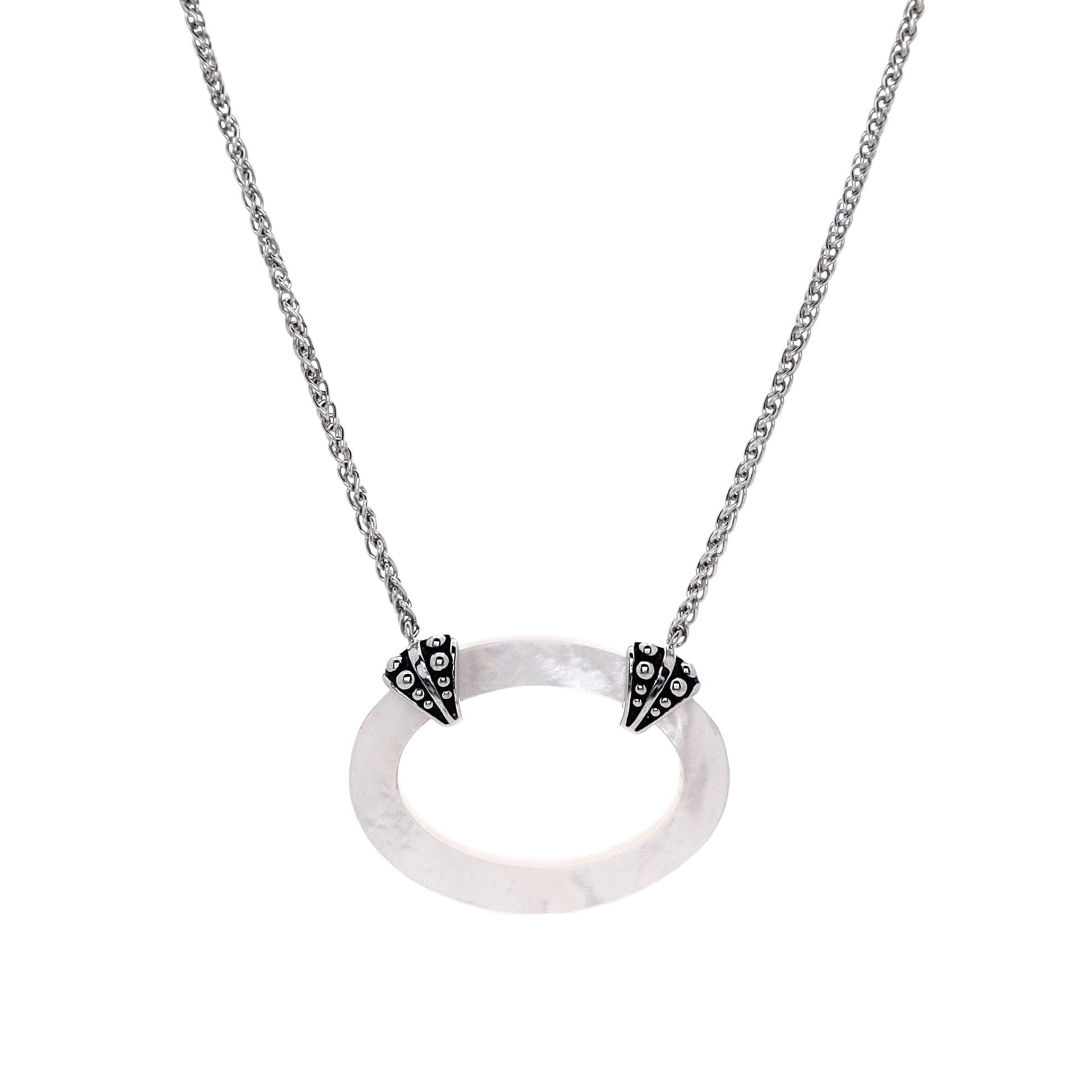 Honora Sterling Silver 17" Oval Mother of Pearl Pendant Necklace