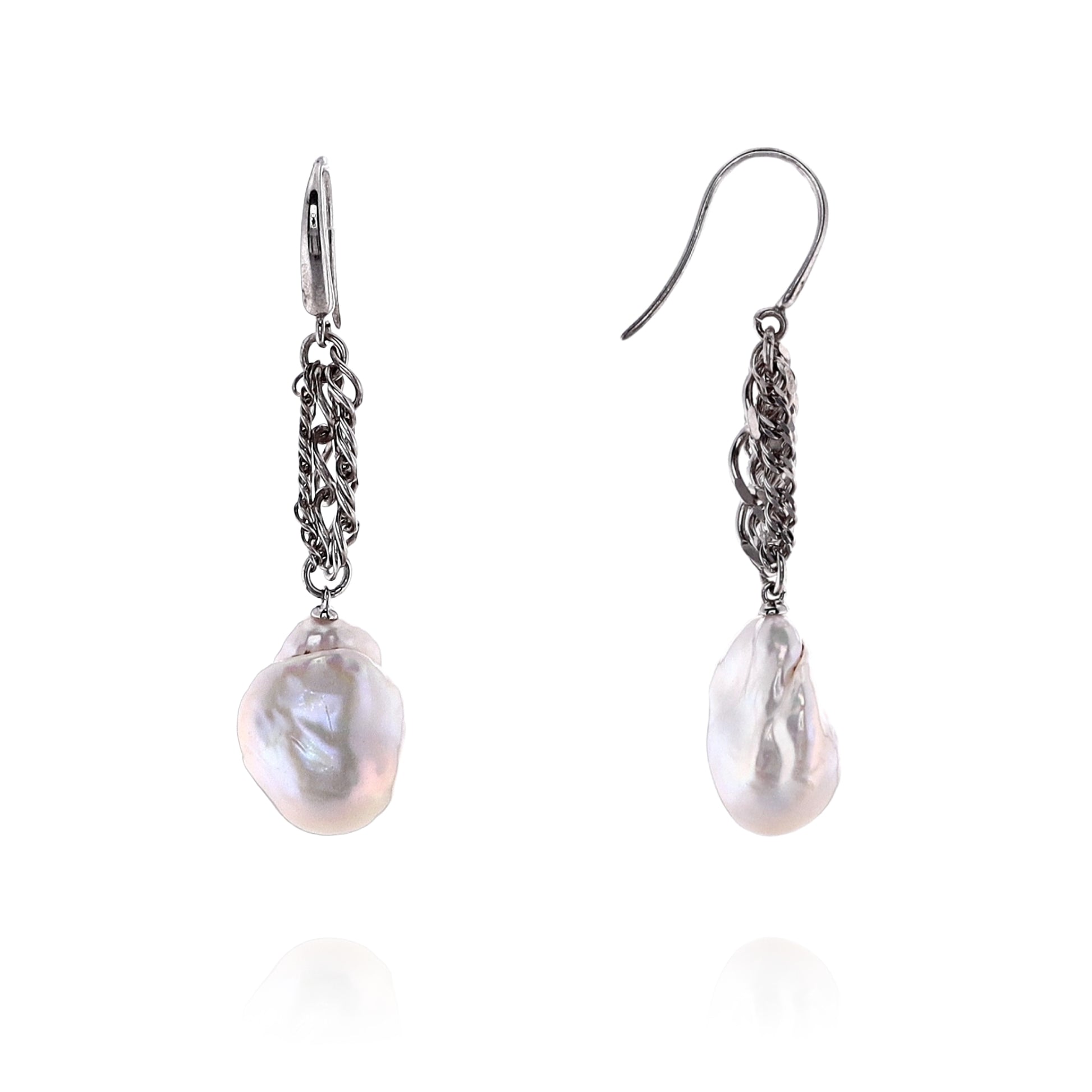 Honora Sterling Silver Double Chain Baroque Pearl Drop Earrings