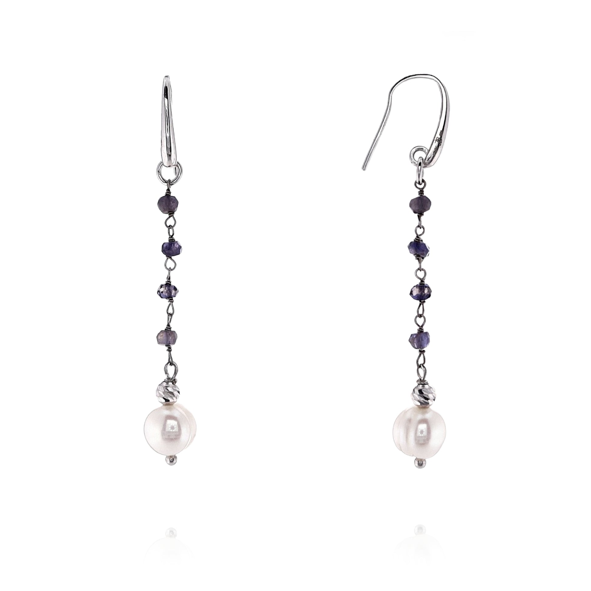 Honora Sterling Silver Pearl and Faceted Purple Iolite Drop Earrings