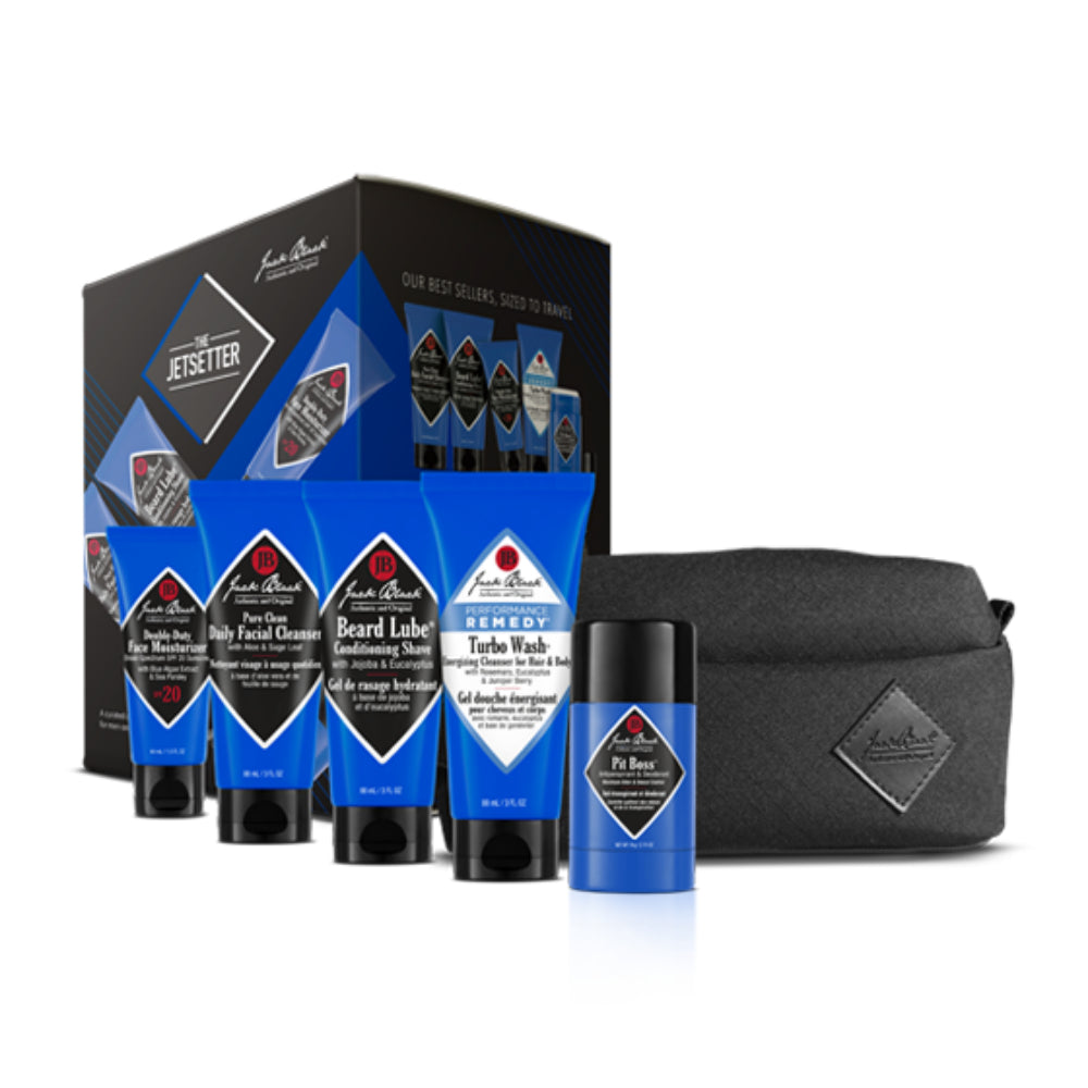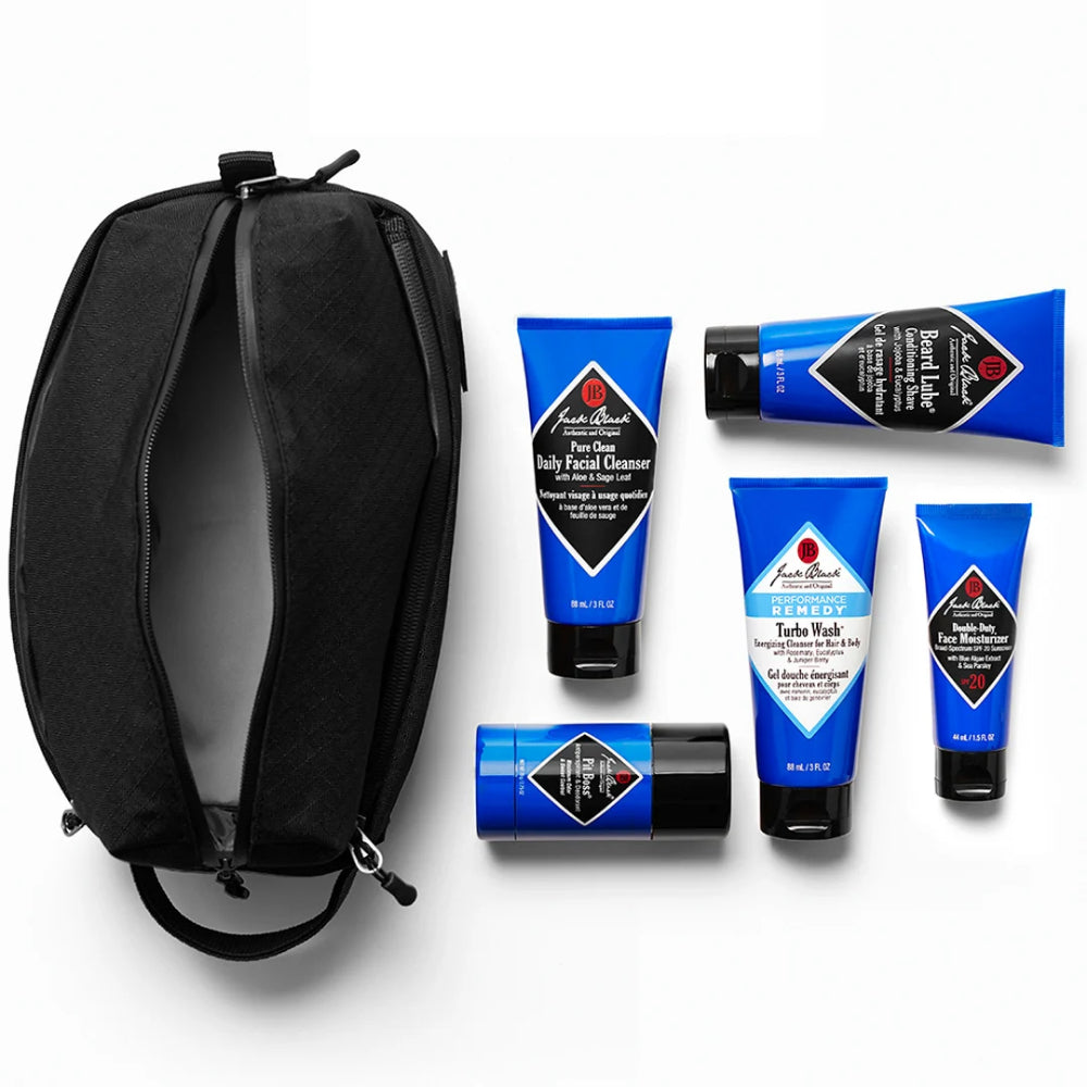 Five Jack Black® bestsellers & a luxe travel bag. For the man who always goes first class. Head-to-toe solutions in travel-friendly sizes, curated for the man on the move.