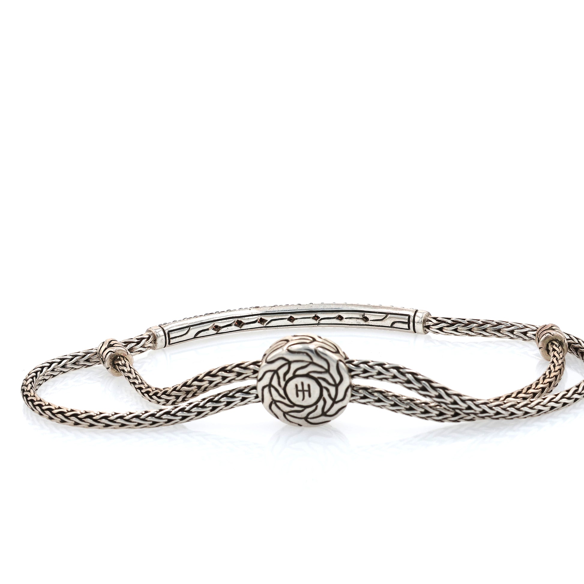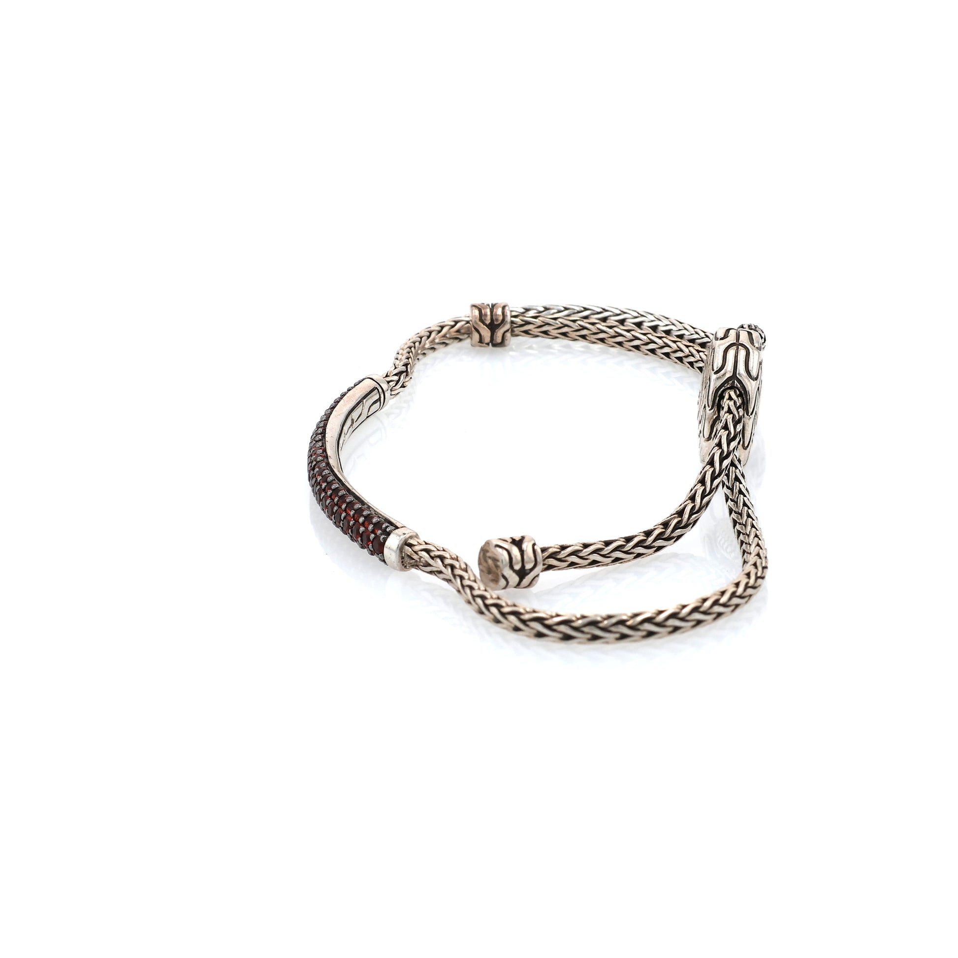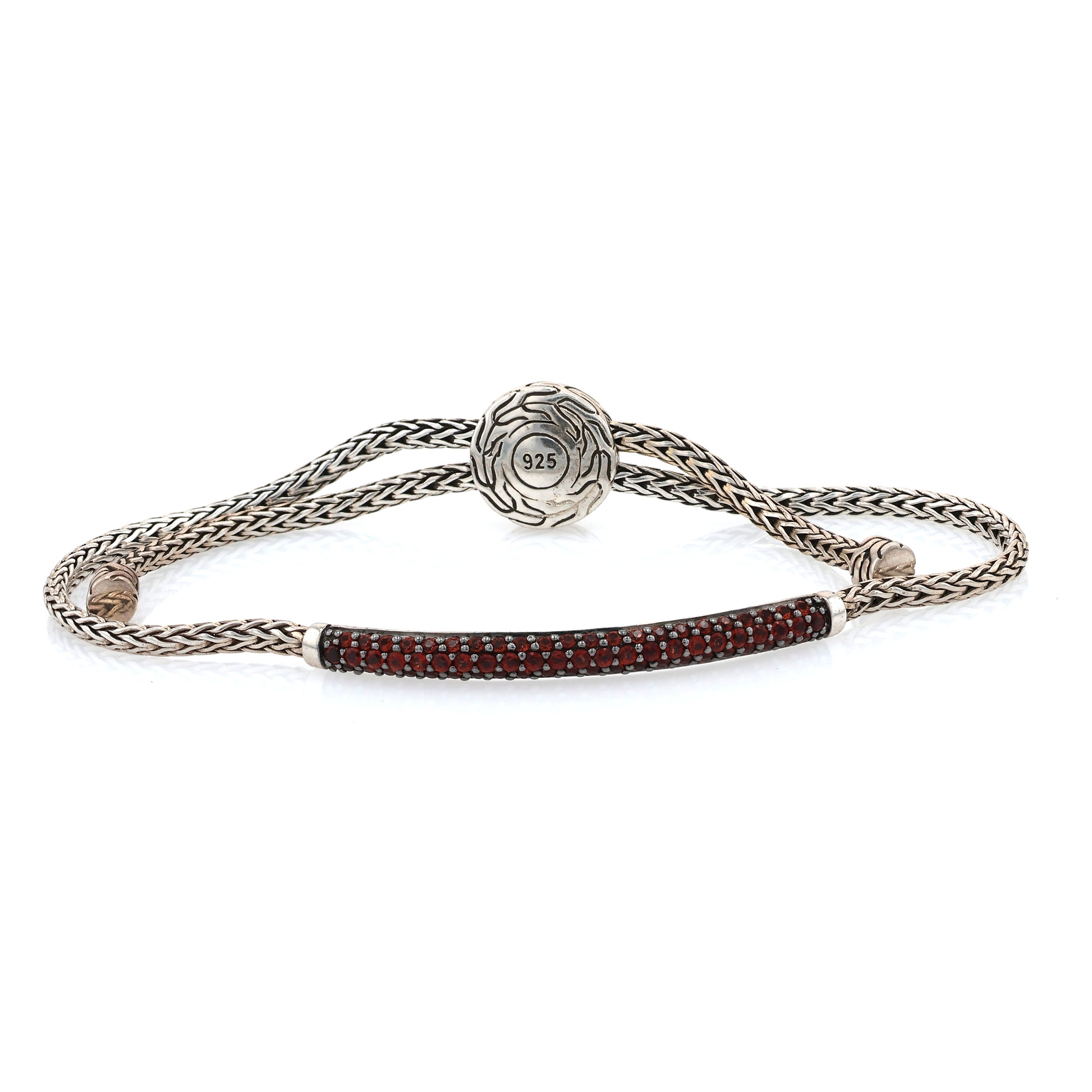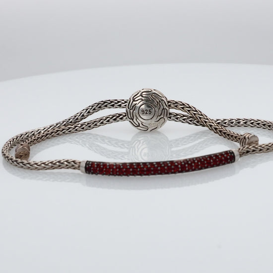 John Hardy SS Classic Chain Silver Mini Chain Pull Through Adjustable Bracelet with Garnets