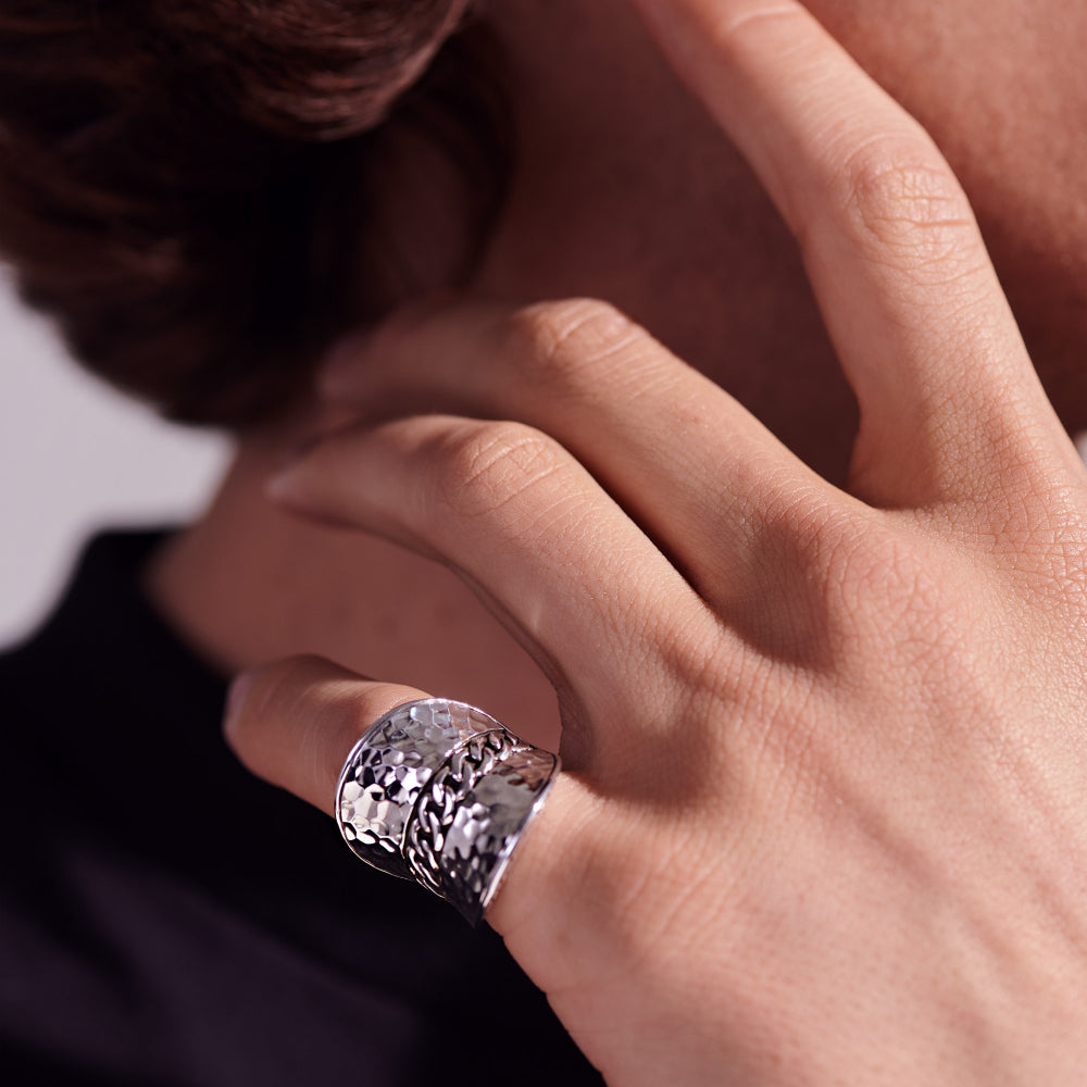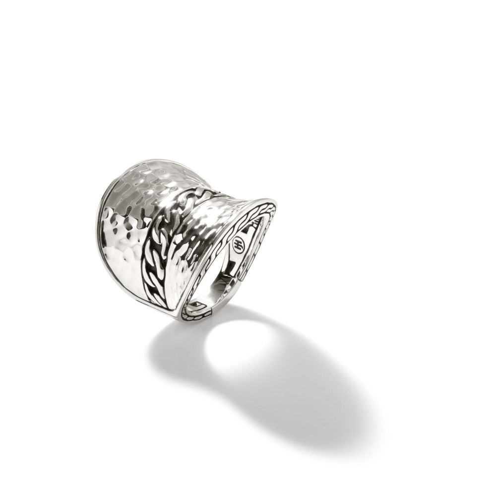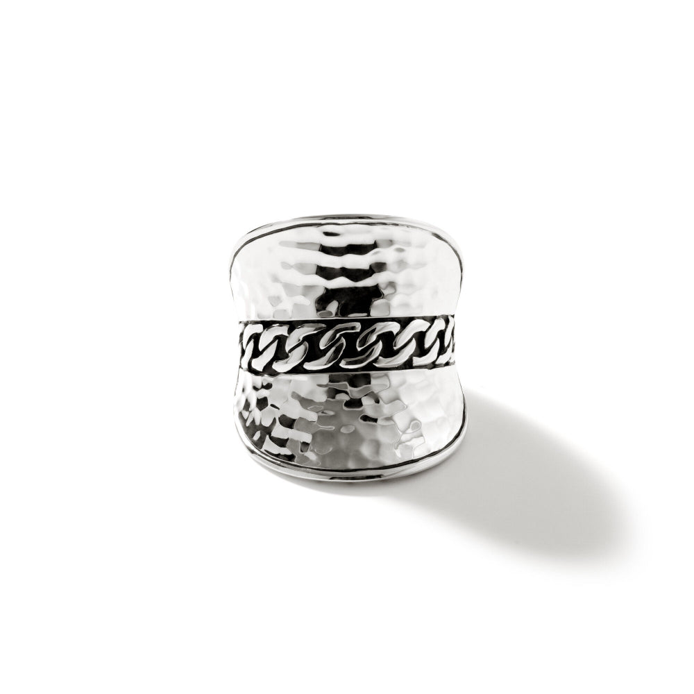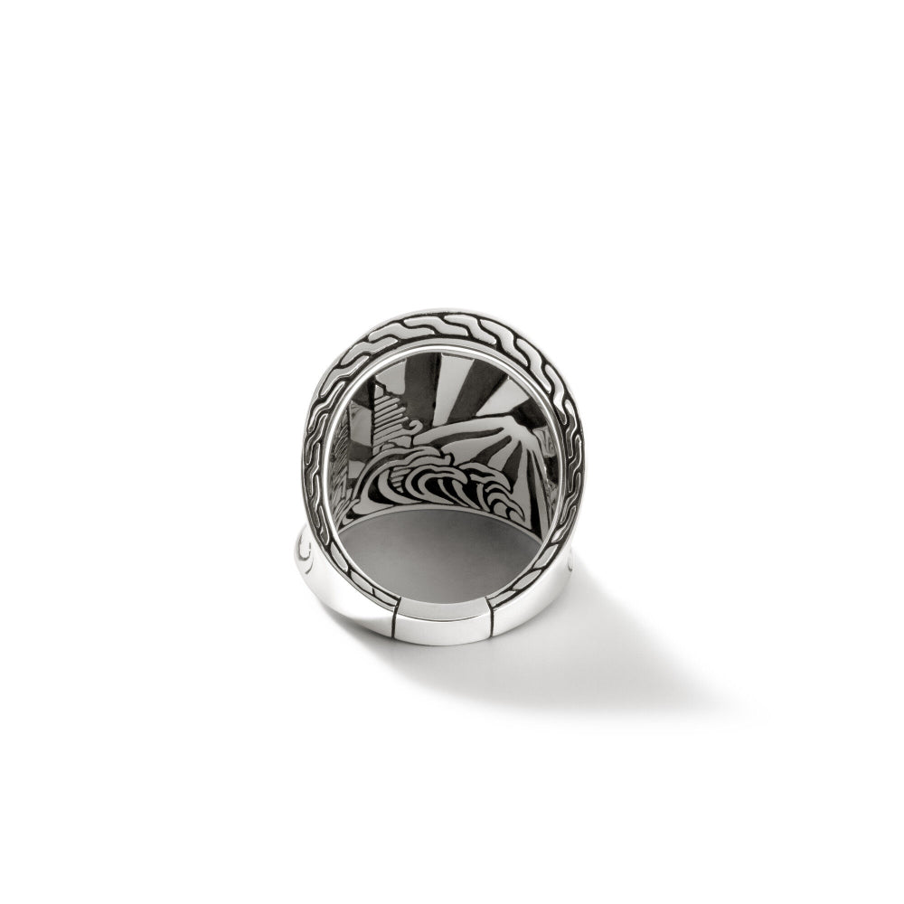 John Hardy Silver Hammered Saddle Ring with Hand-Carved Bali Landscape Backgrill
