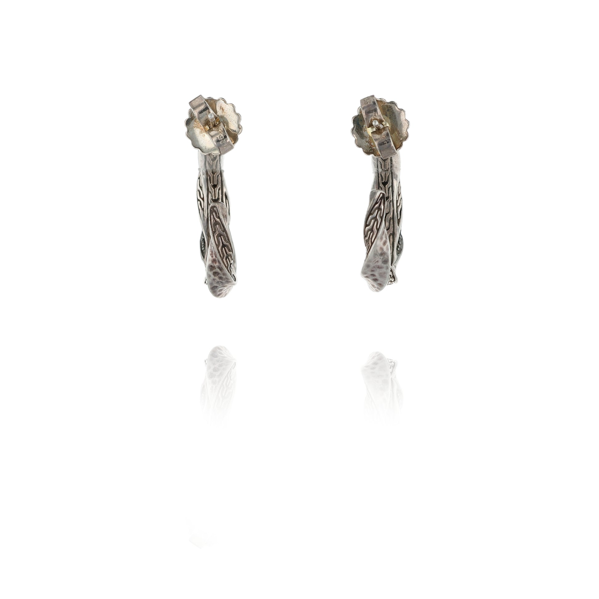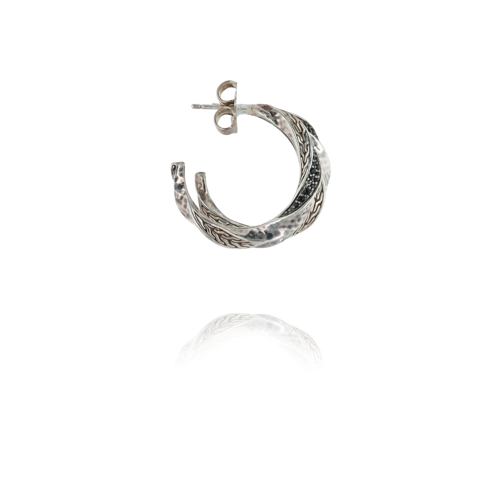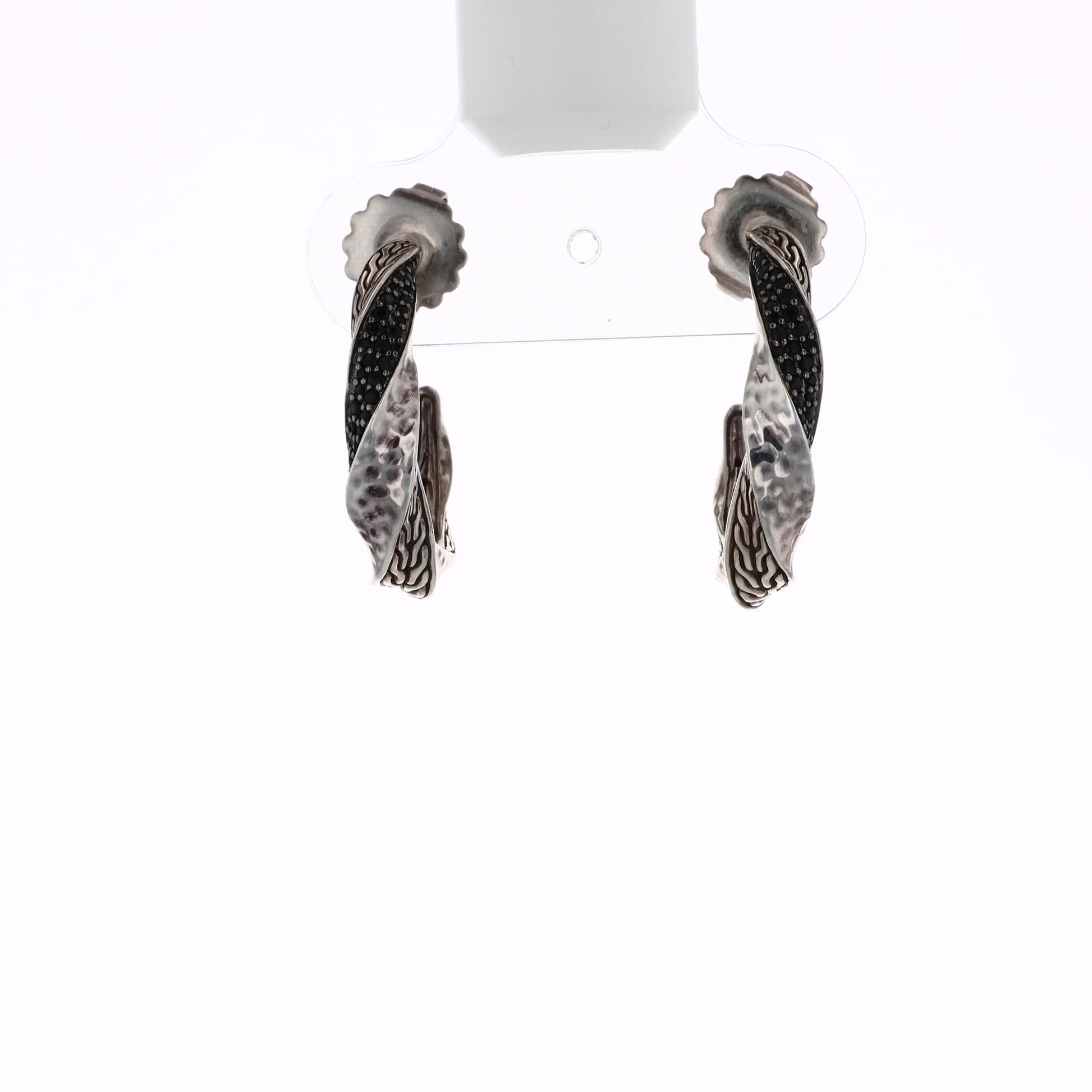 John Hardy Sterling Silver Black Sapphire And Spinel Hammered Hoop Earrings