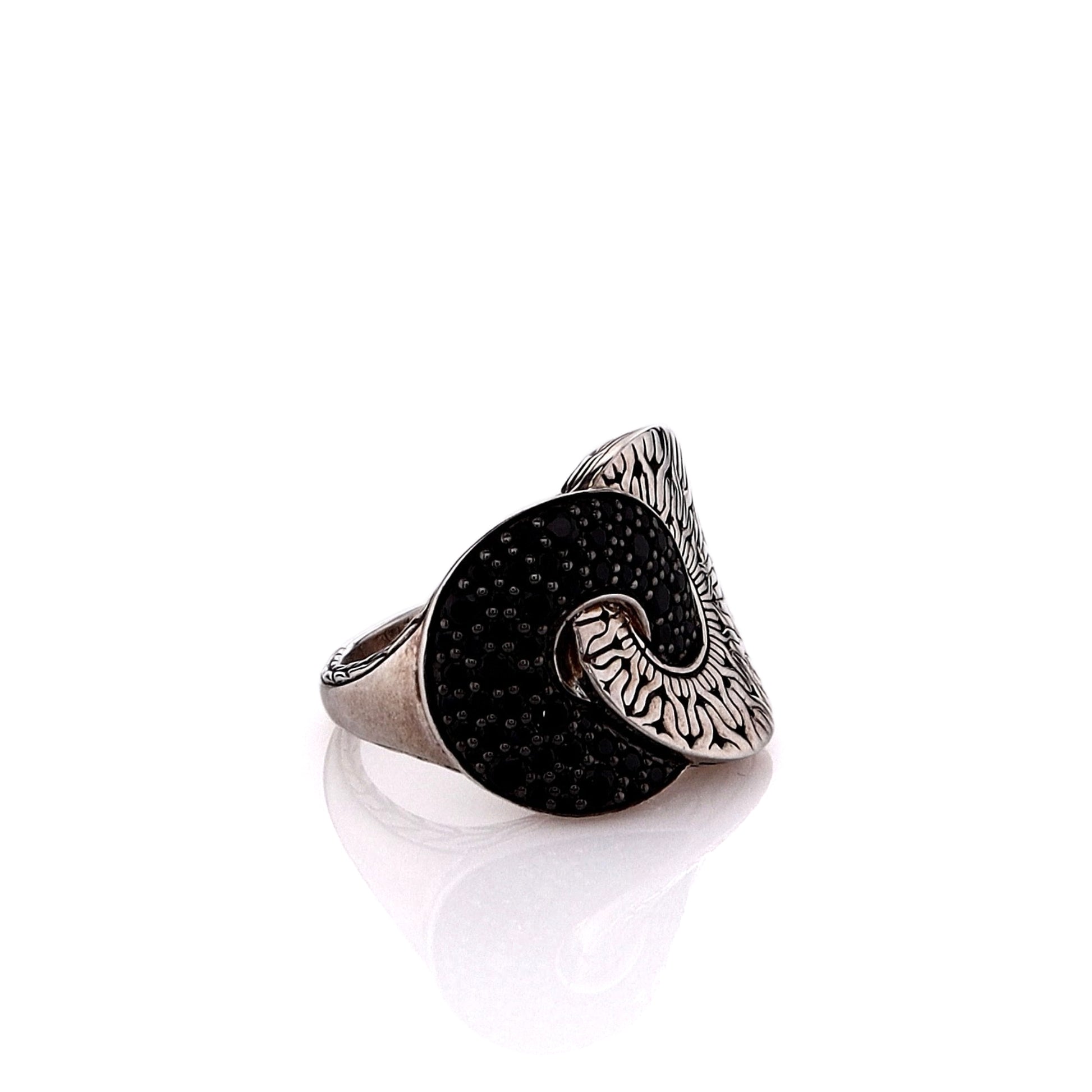 John Hardy Sterling Silver Classic Chain Black Sapphire and Spinel Ring