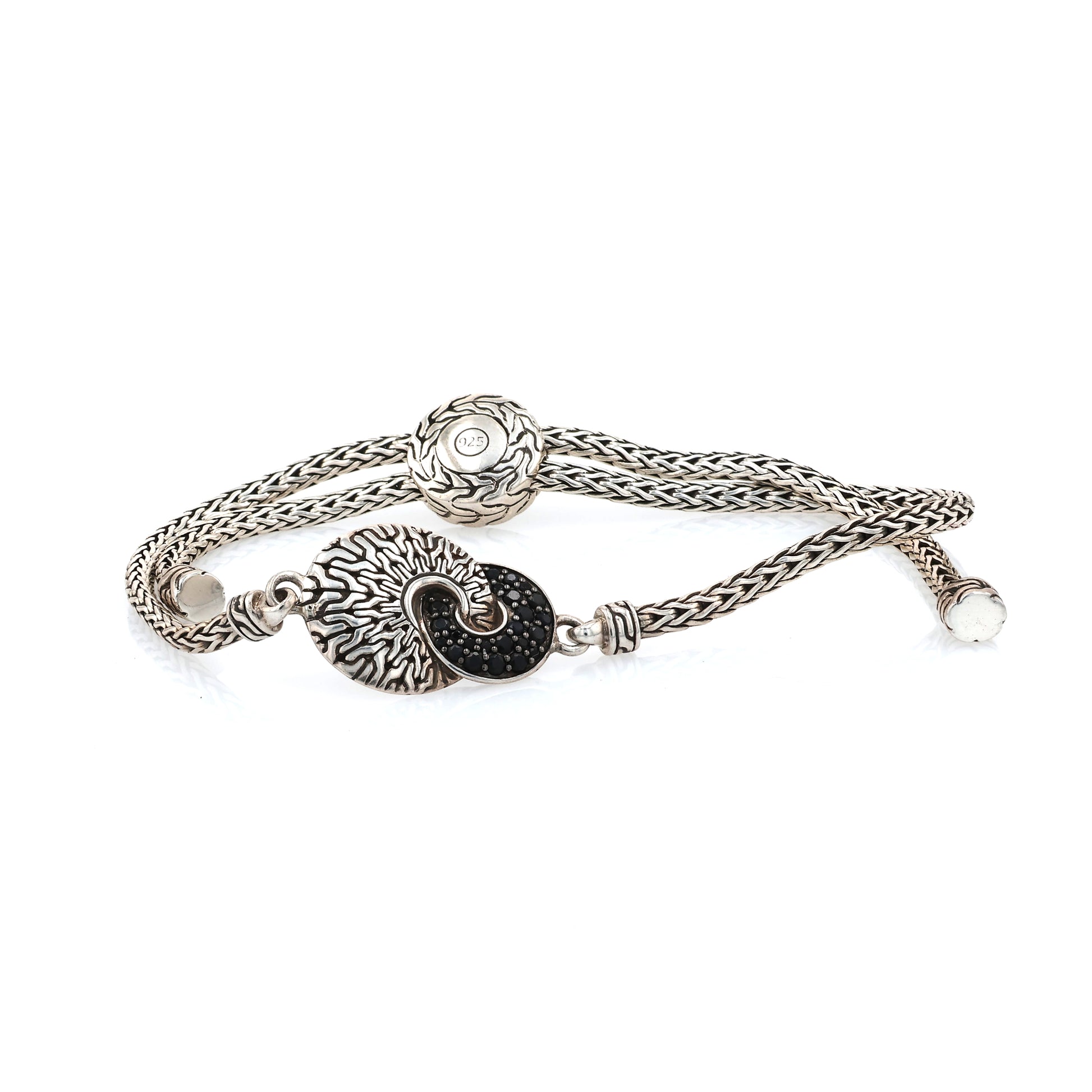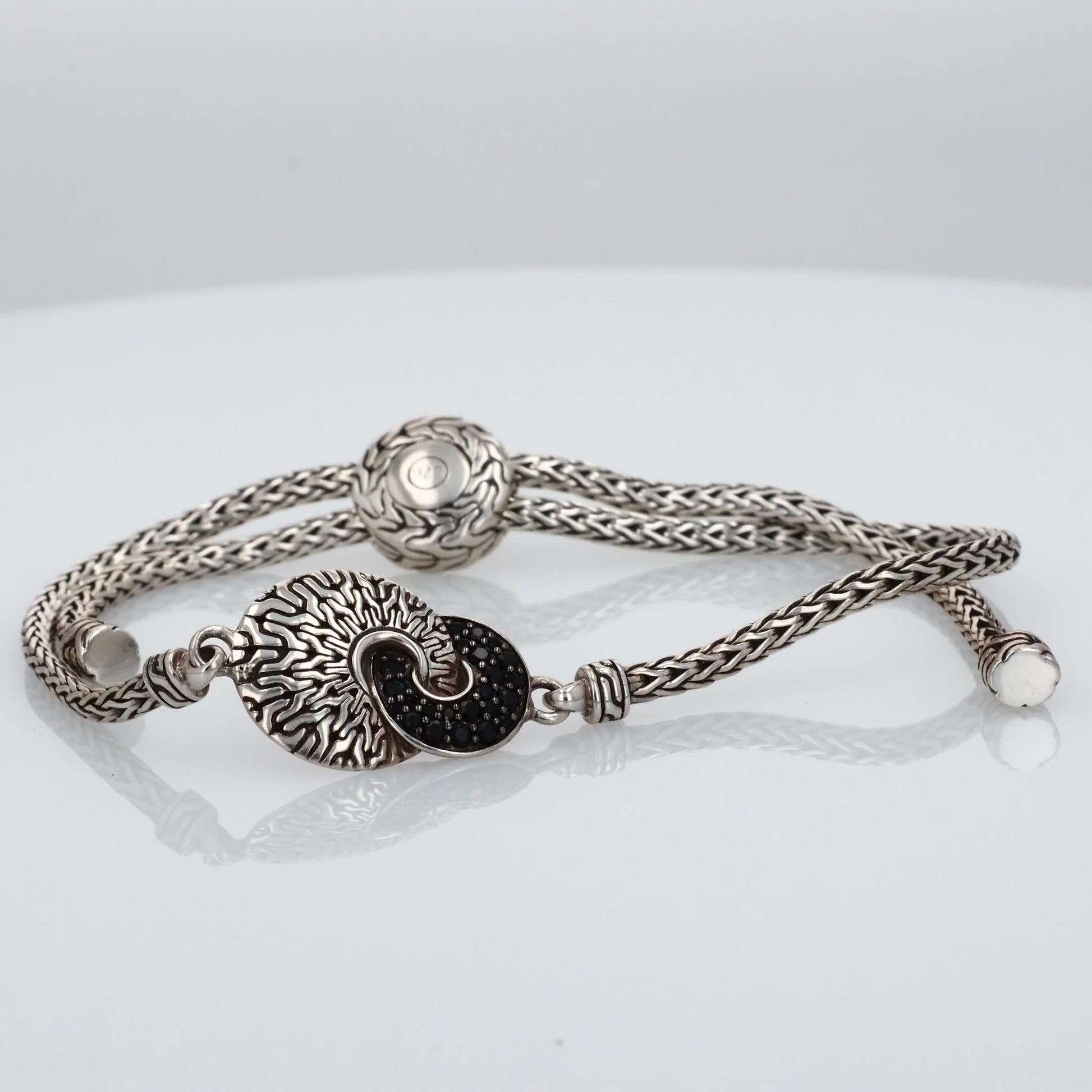 John Hardy Sterling Silver Hammered Design Black Sapphire and Spinel Pull Through Bracelet