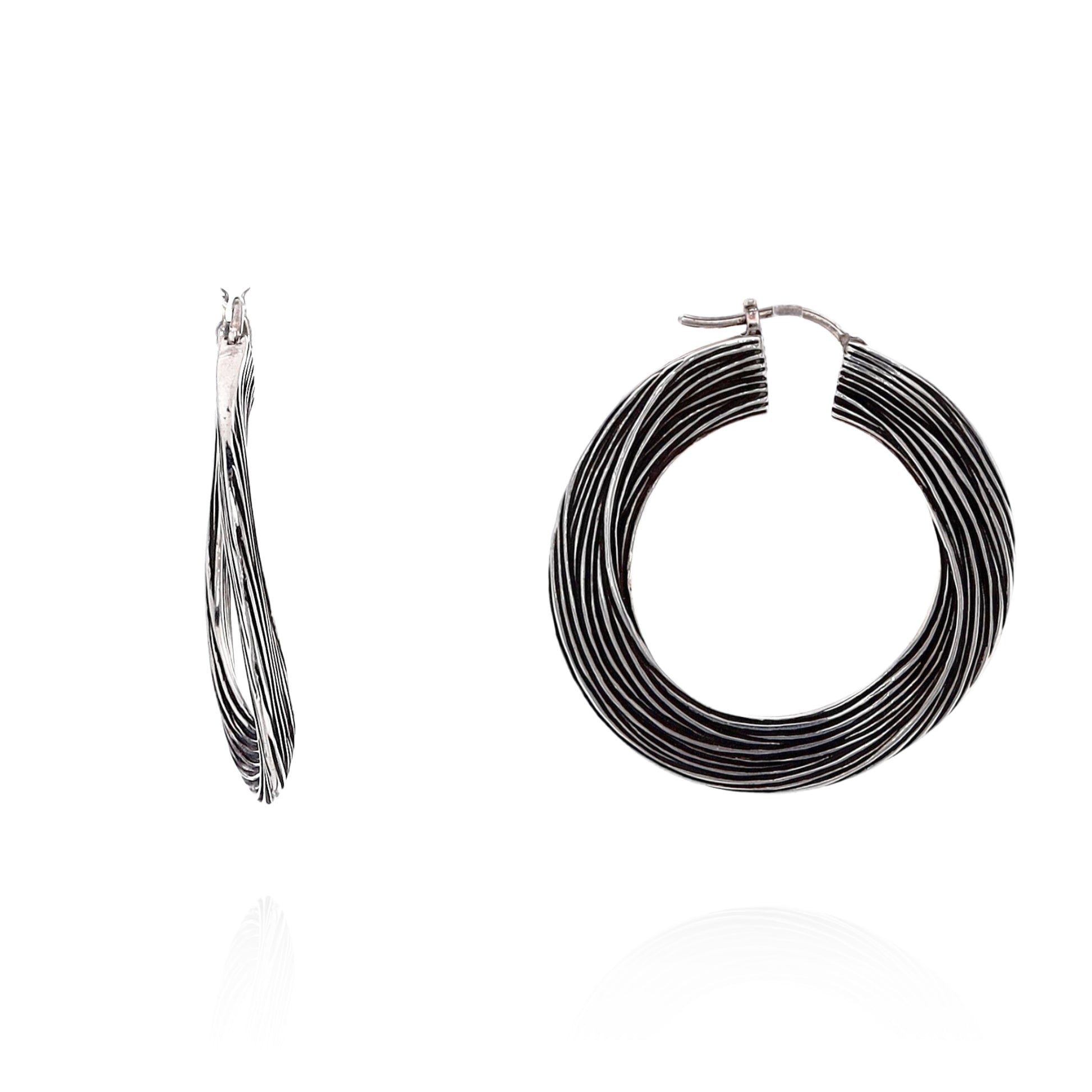 John Hardy Sterling Silver Striated Bamboo Design Hoop Earrings