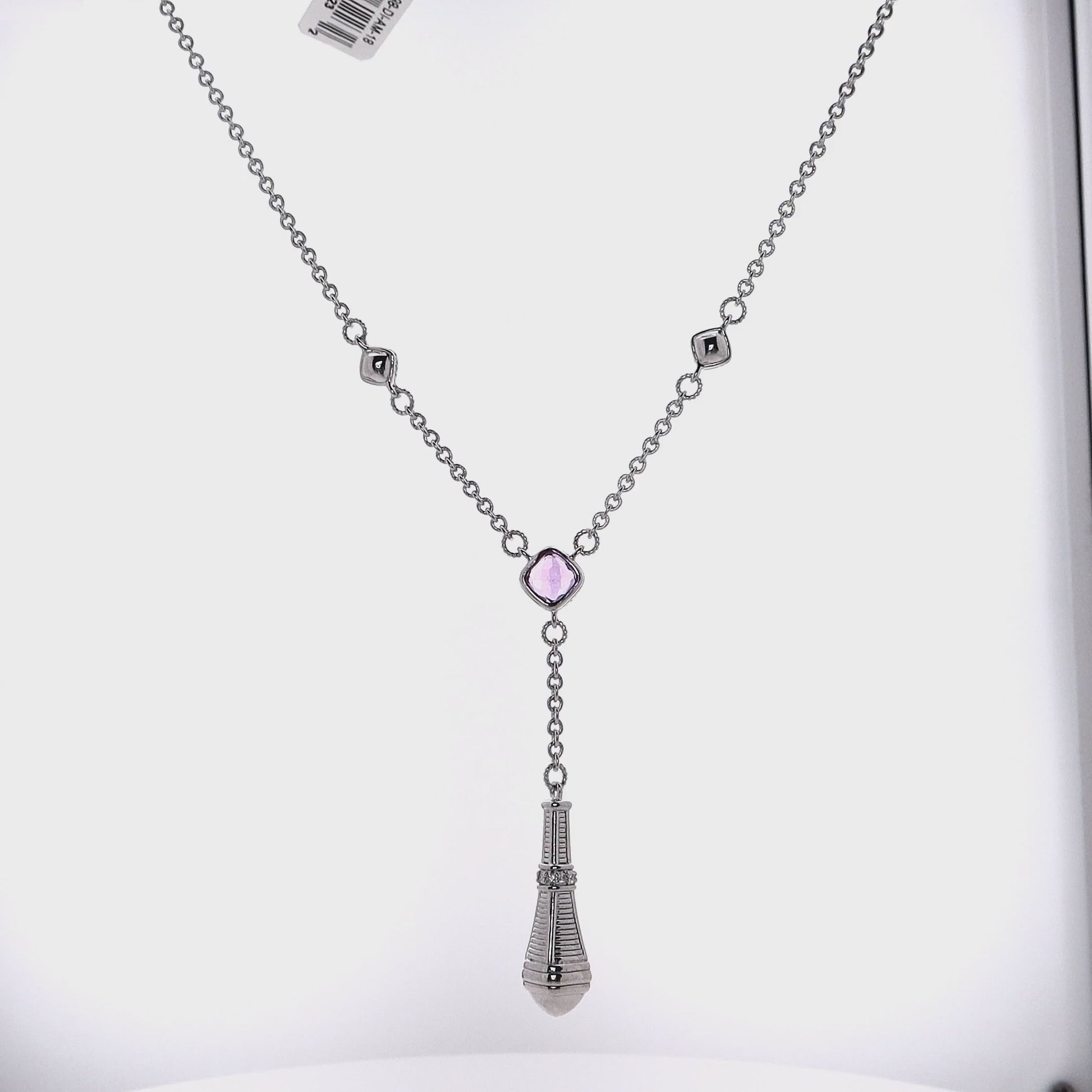 Judith Ripka Cassandra Collection Sterling Silver Amethyst and Diamond Drop Necklace