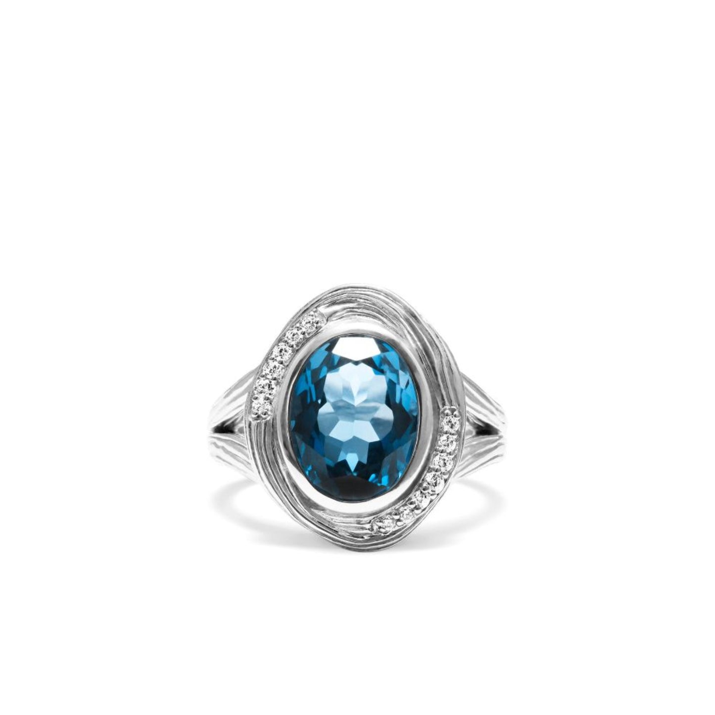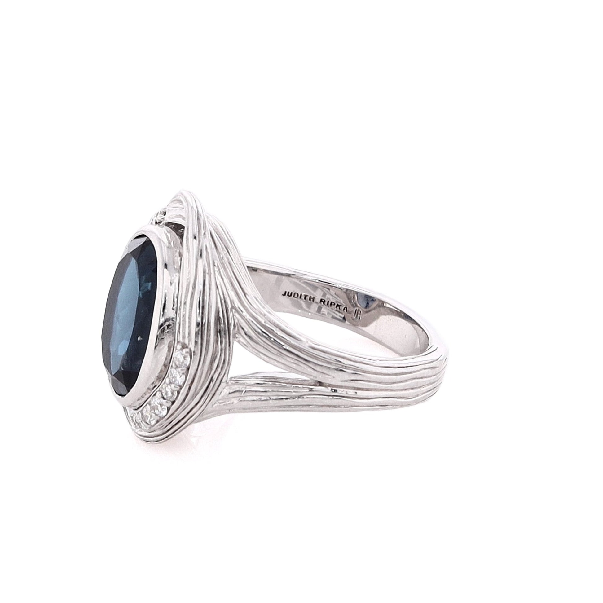 Judith Ripka Santorini Sterling Silver Oval Blue Topaz and Diamond Ring
