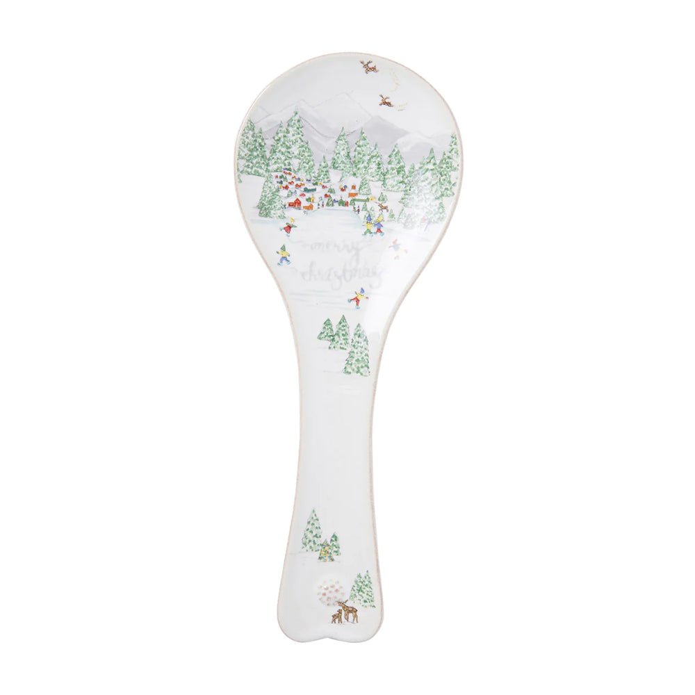 From swirling marshmallows into a mug of hot chocolate or tending to a bubbling pot, this delightful spoon rest will keep your countertops clean of drips and dribbles so you can use your time to tend to what's important. Featuring illustrations of our interpretation of the magical world of the North Pole, this piece will help you deck the halls - and your house - for the Holiday season