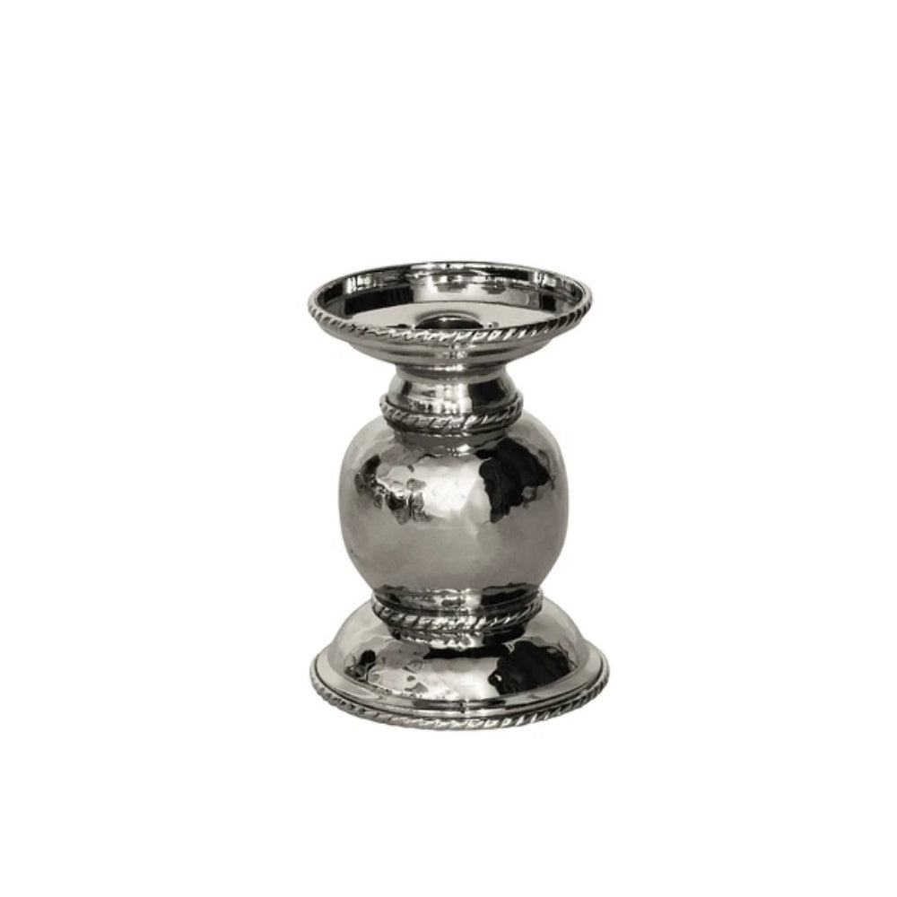 Nothing sets the scene like candlelight and oh! does Graham know how to dazzle. Handcrafted of hammered stainless steel for a shimmering effect, trimmed with our signature thread motif, and polished to brilliance—this candle holder is a fabulous finishing touch for everyday to grand occasions alike. Even better, it’s designed to hold either taper or pillar candles.