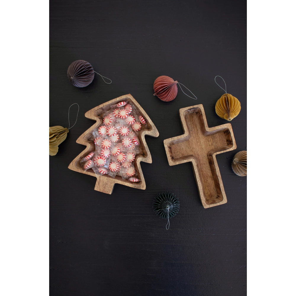 This wooden Christmas tree bowl is begging to be filled with goodies. Display your favorite ornaments, tasty treats, or holiday baubles in this carved-in-India bowl. Make this Christmas tree bowl an accent table centerpiece or console table adornment. Christmas Decoration