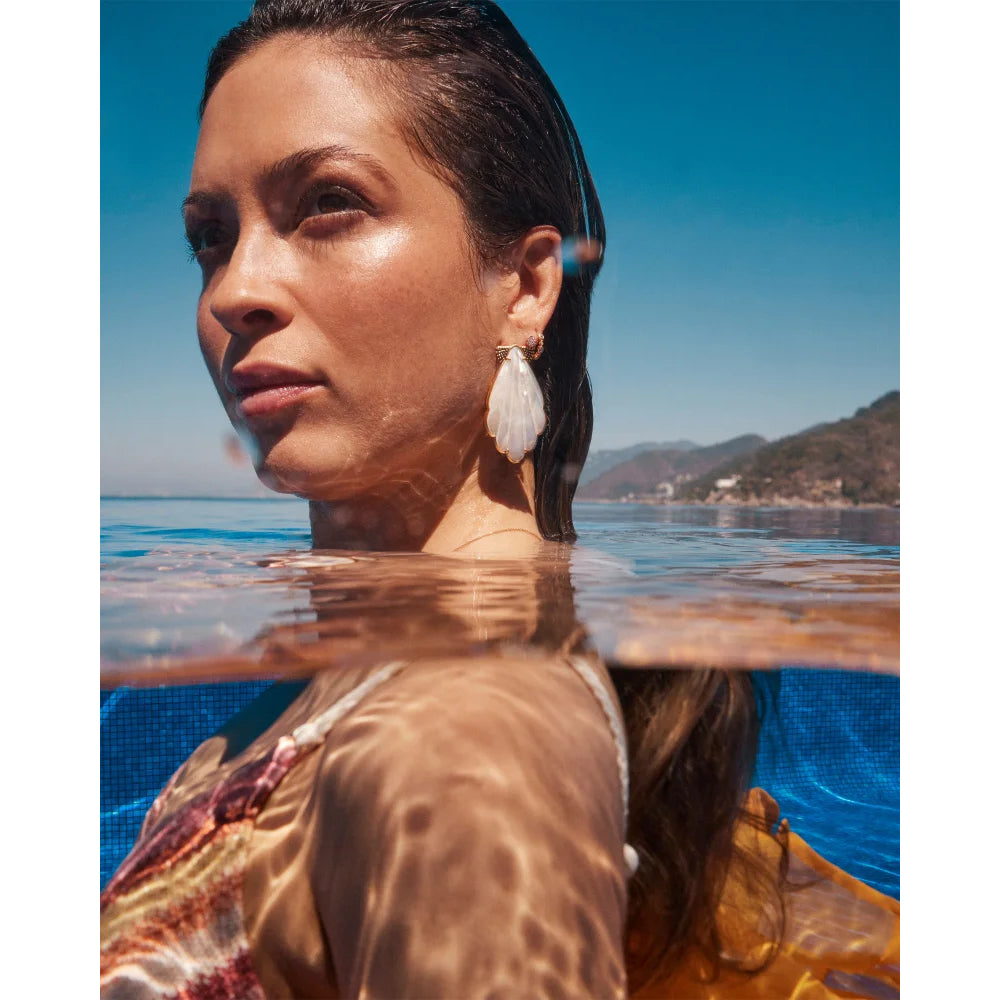 The Alexa Vintage Gold Statement Earrings bring the best kind of drama to everyday hangs and celebratory occasions alike. Oversized shells captured in elegantly carved mother-of-pearl, this pair is a sophisticated addition to any maximalist’s wardrobe.