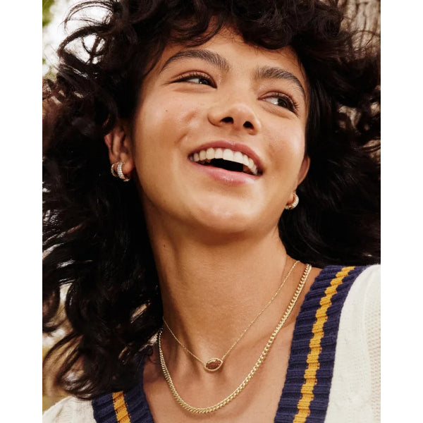Kendra Scotts signature pendant style in a football shape? Touchdown! The Football Gold Short Pendant Necklace in Orange Goldstone is the perfect way to put the “game” in your game day look. Layer with your favorite chain or wear as a standalone necklace—either way, you’ll be the most stylish fan in the stands.