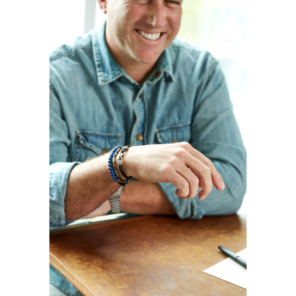 Durable cording and one-of-a-kind stones create the polished design of the Cade Oxidized Sterling Silver Corded Bracelet in Blue Lapis. Complete with adjustable closure to easily create the perfect fit, this bracelet is designed with low maintenance Sterling Silver for everyday wear.